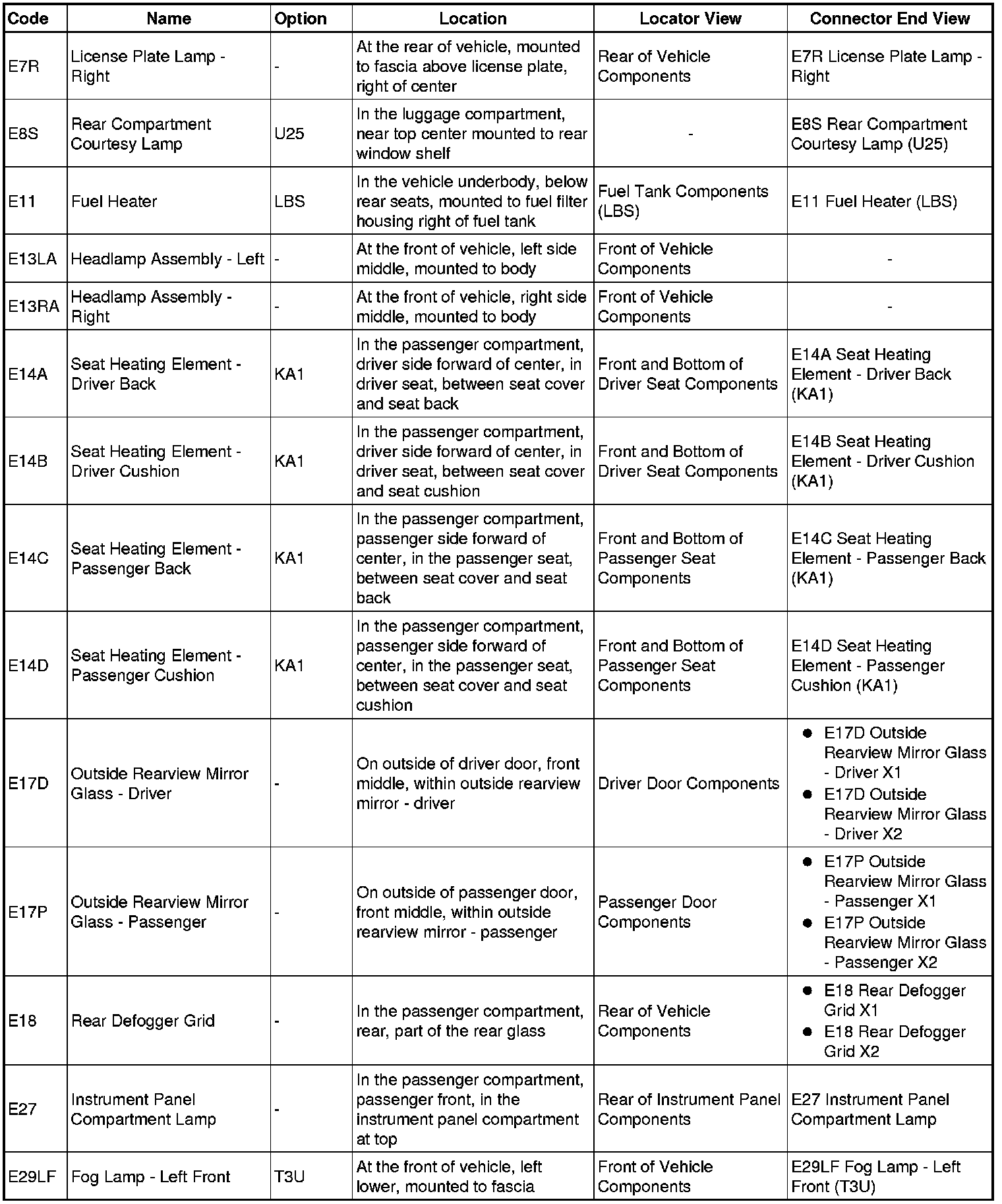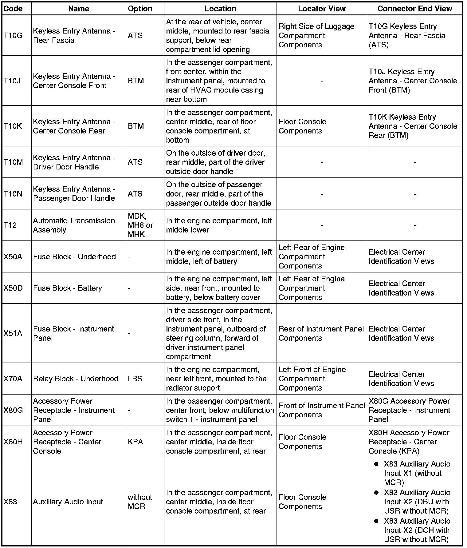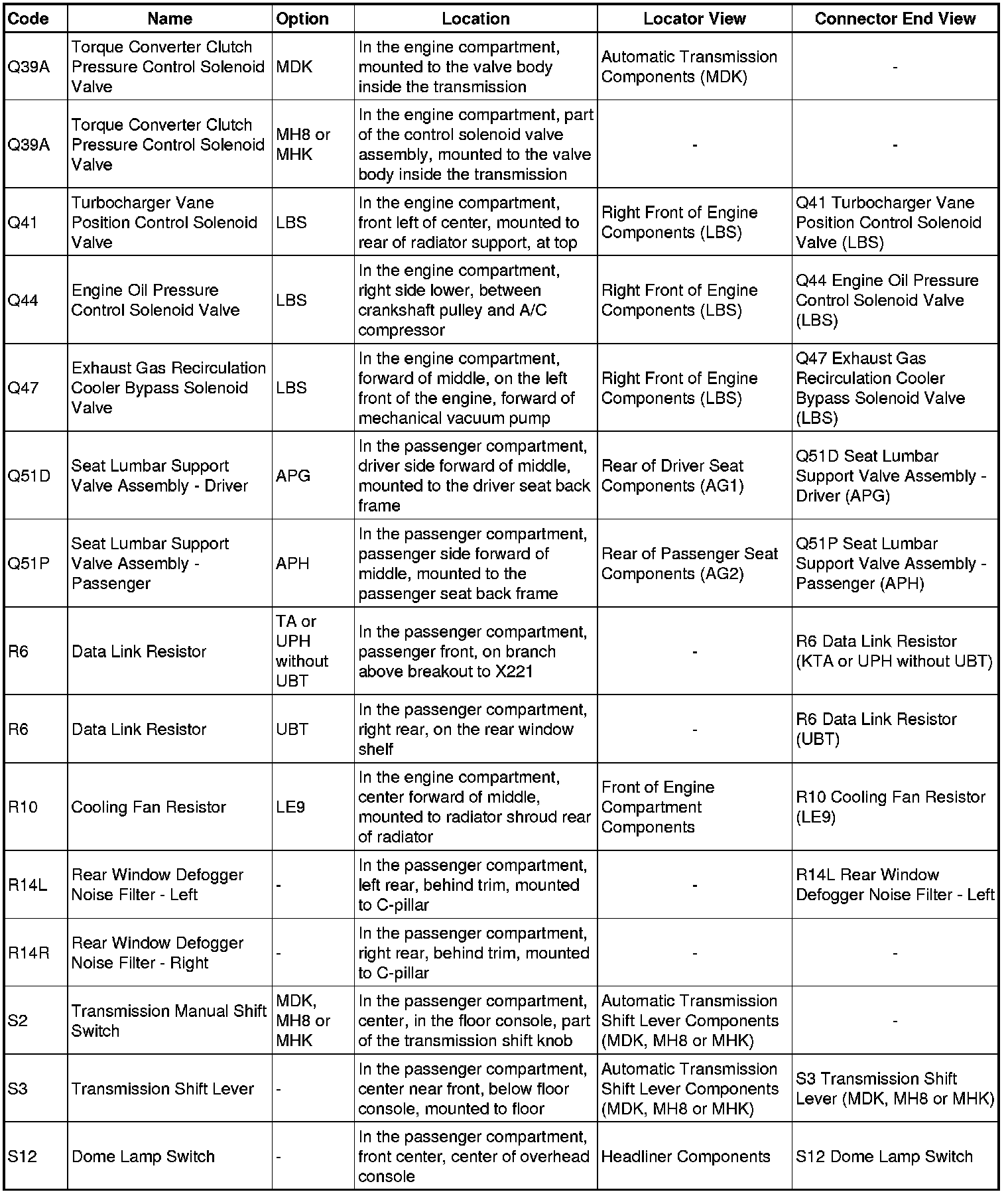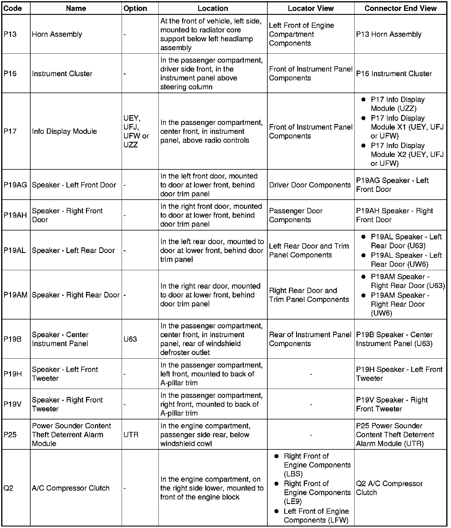 Master Electrical Component List