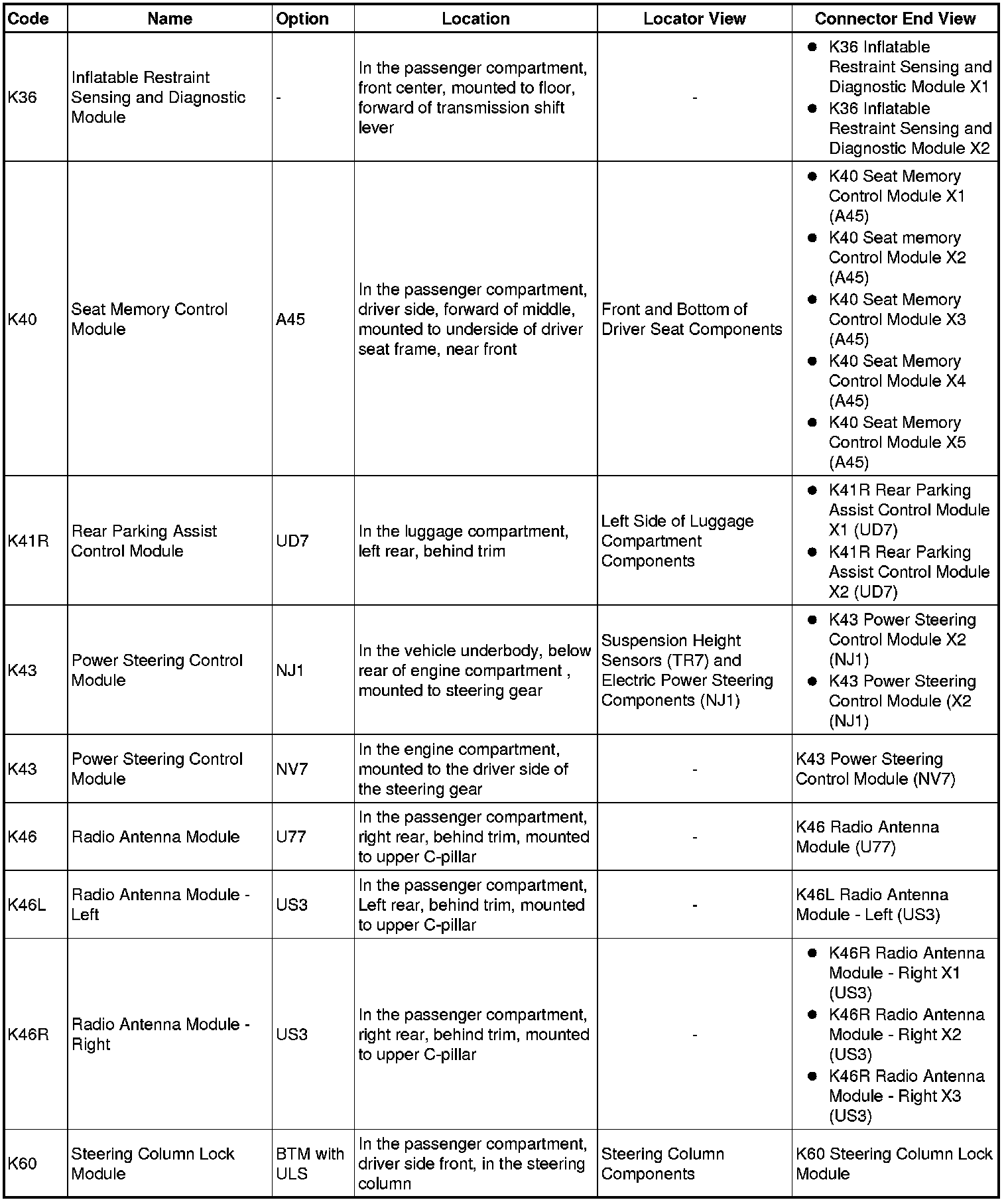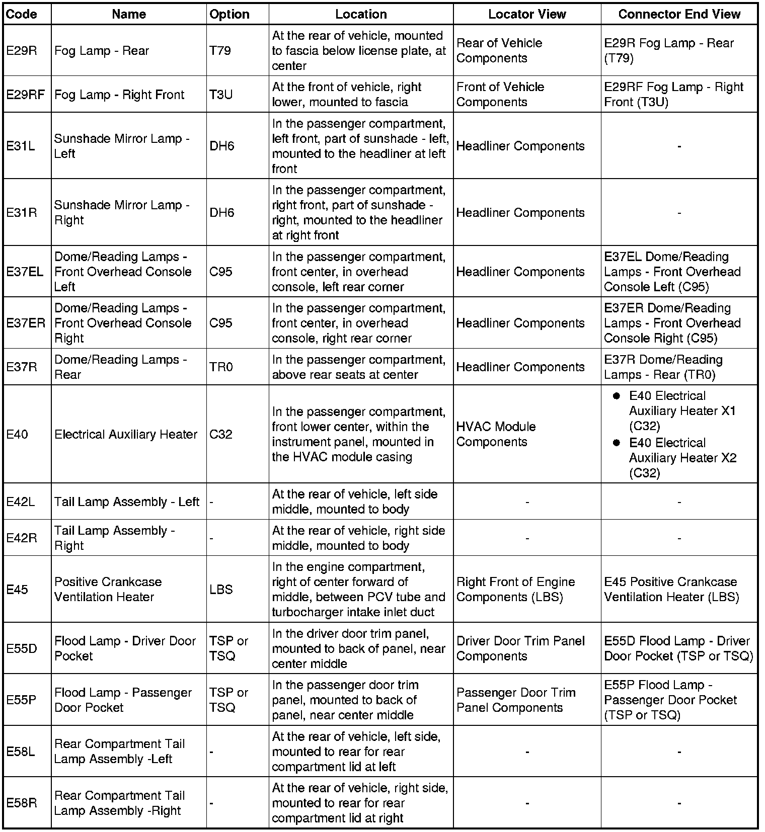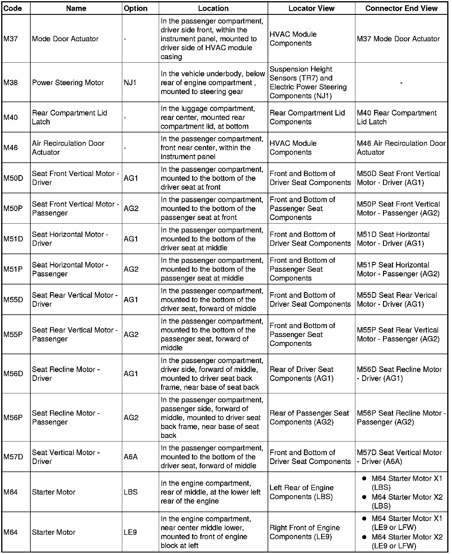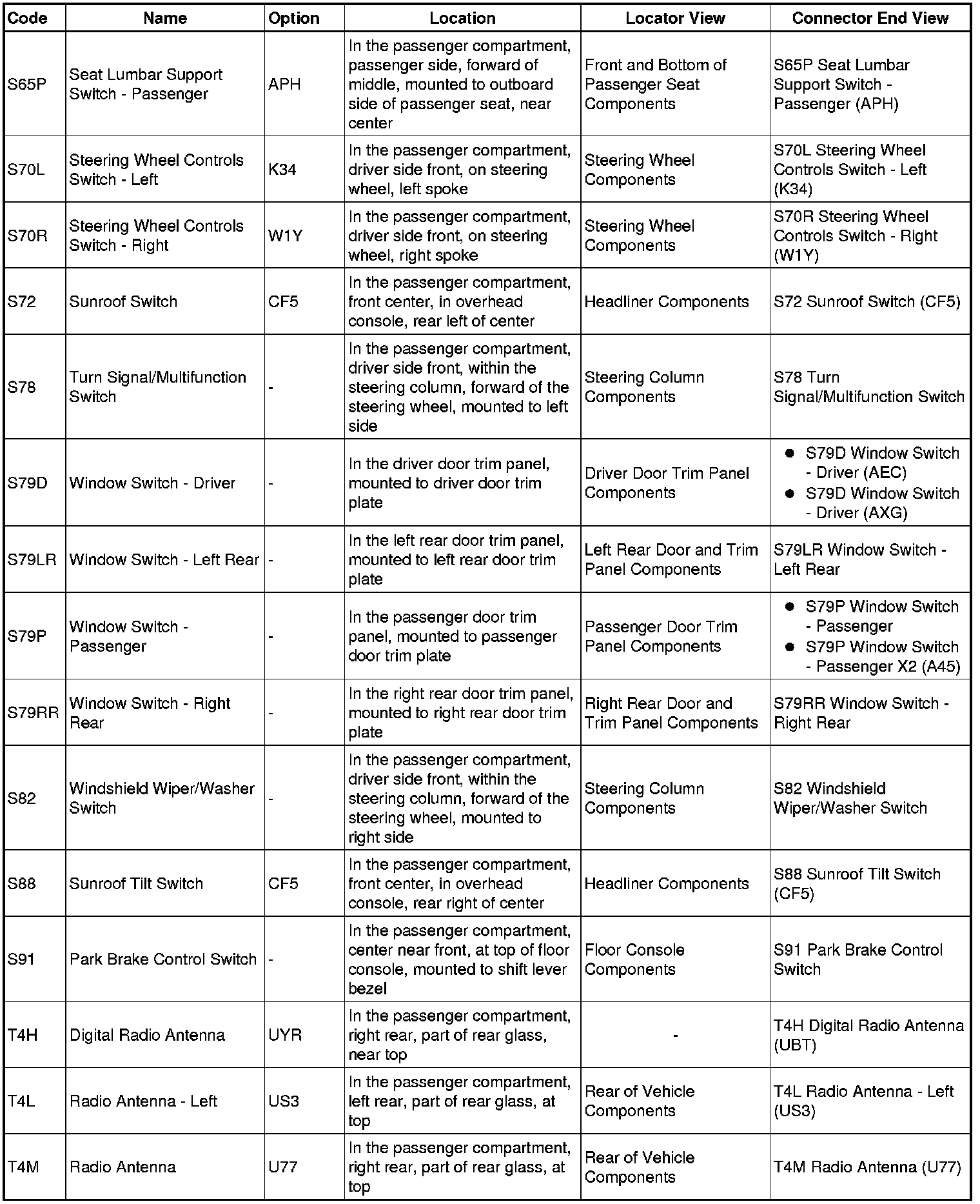 Master Electrical Component List