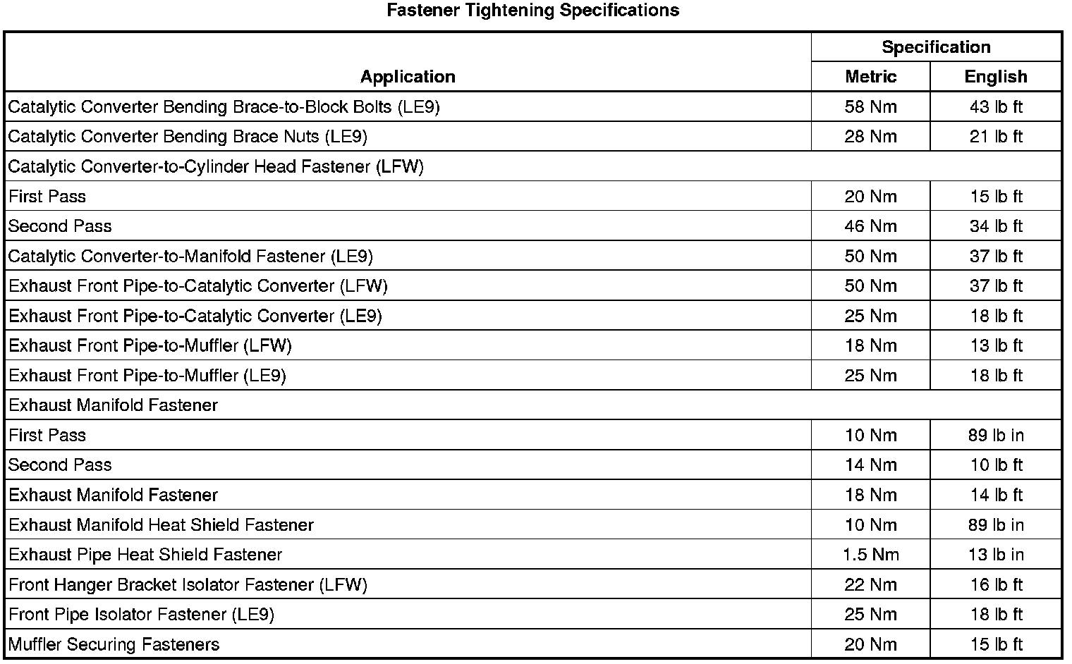 Fastener Tightening Specifications