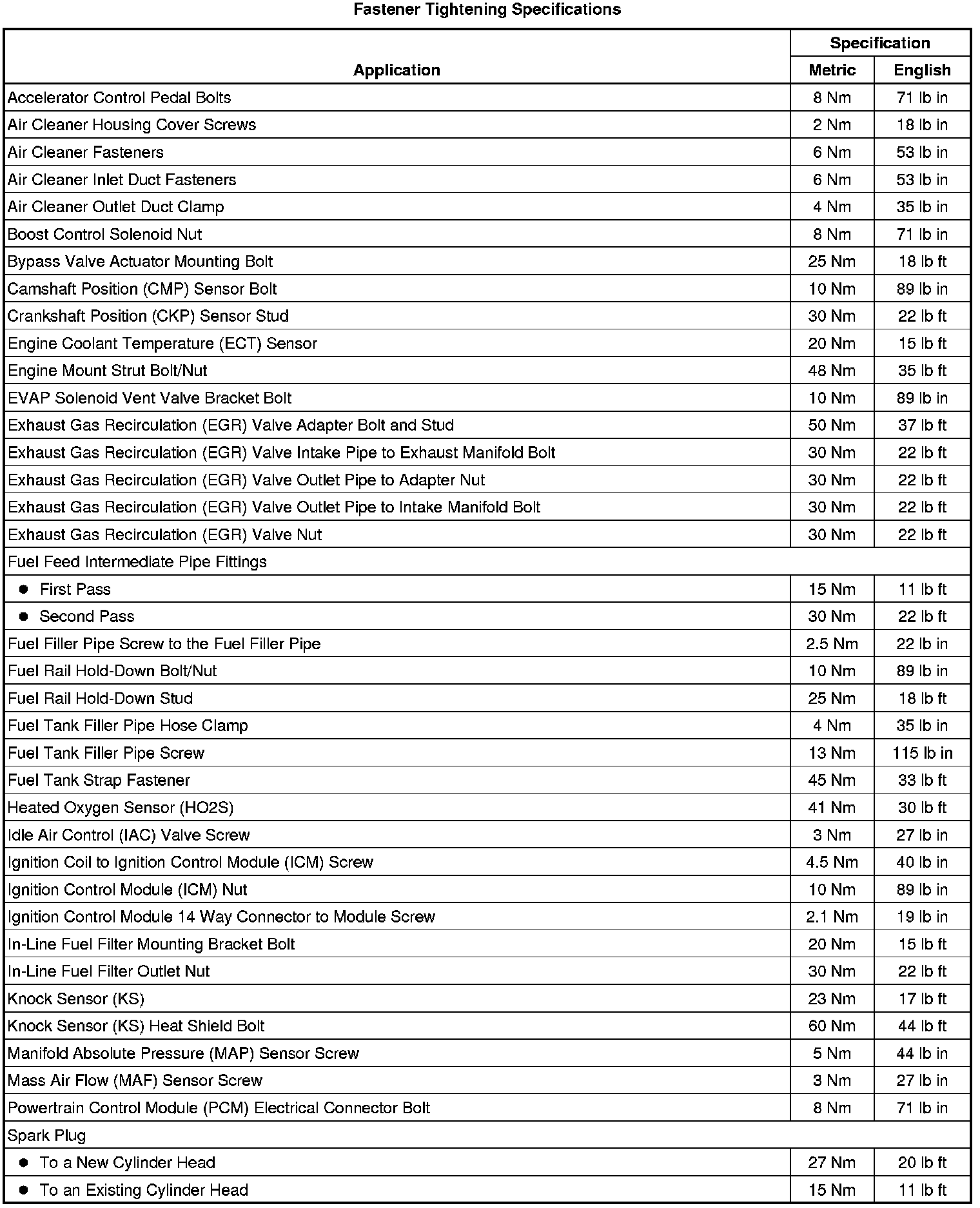 Fastener Tightening Specifications