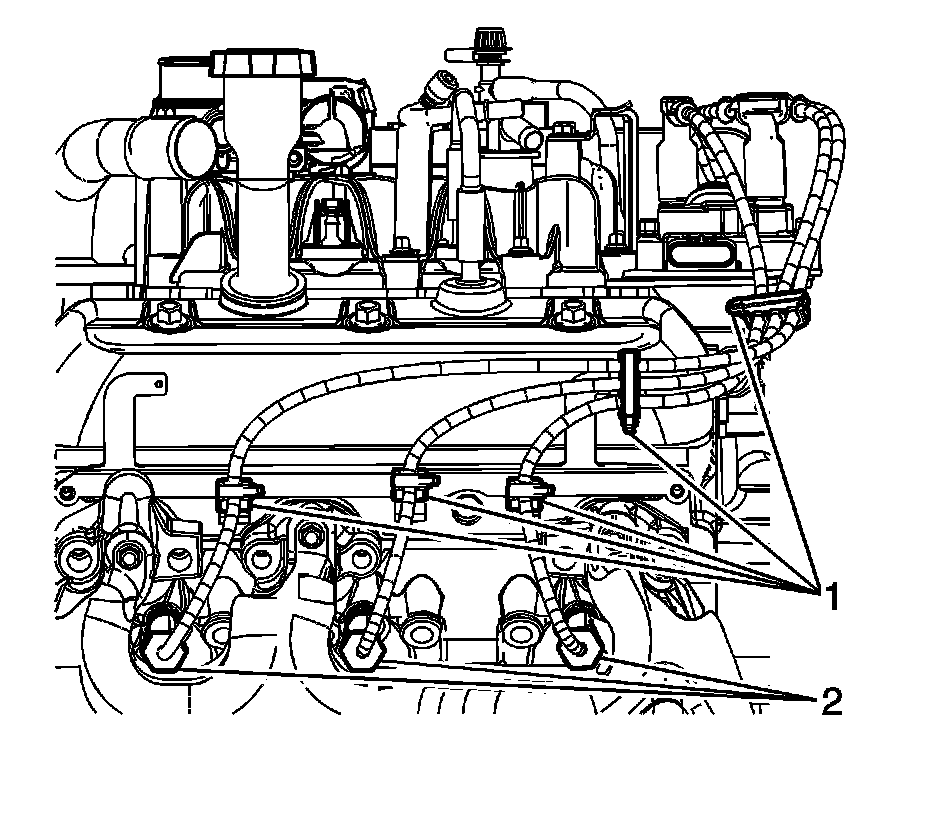 1. Remove the appropriate spark plug wire boot(s) (2) from the spark plug.