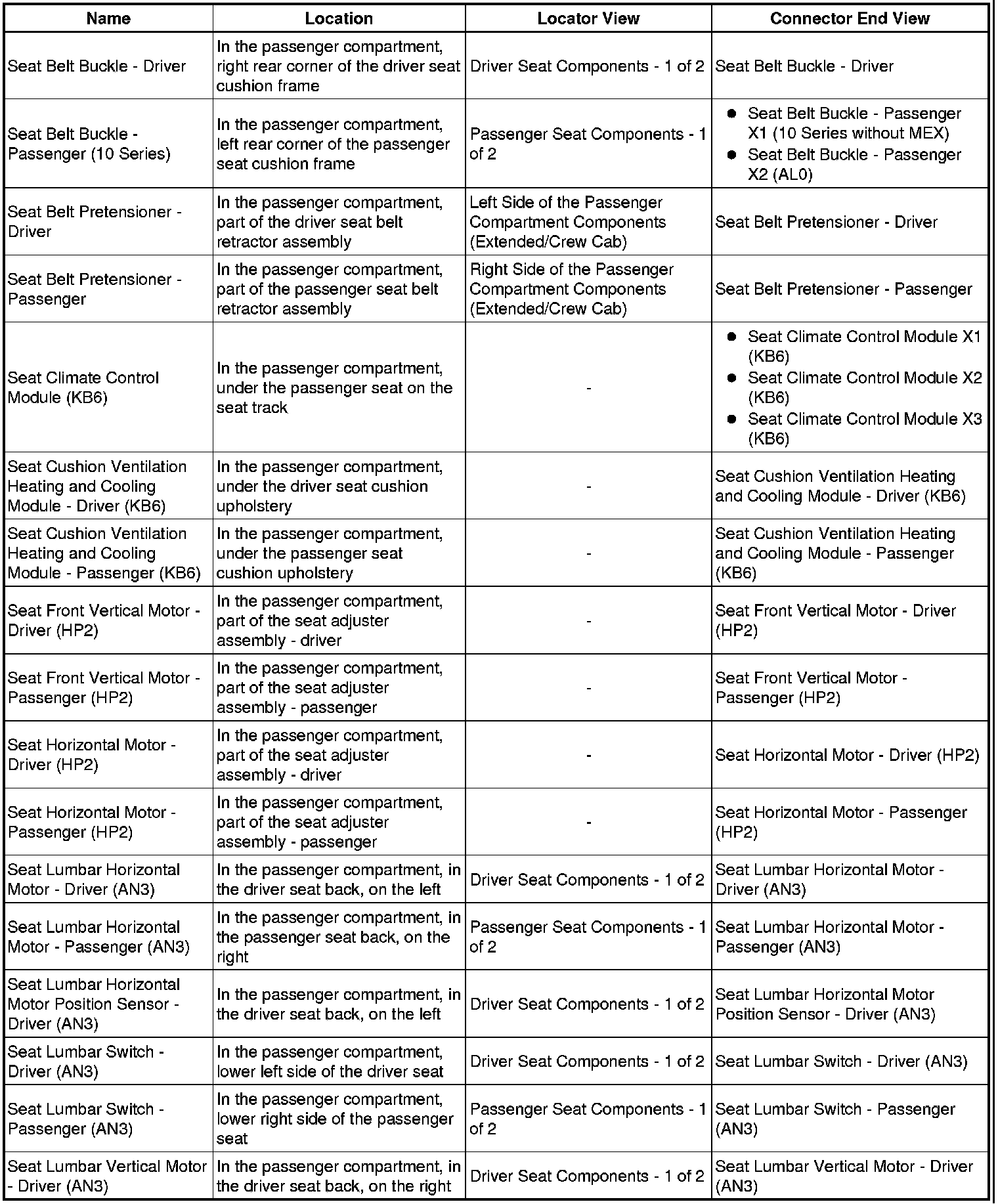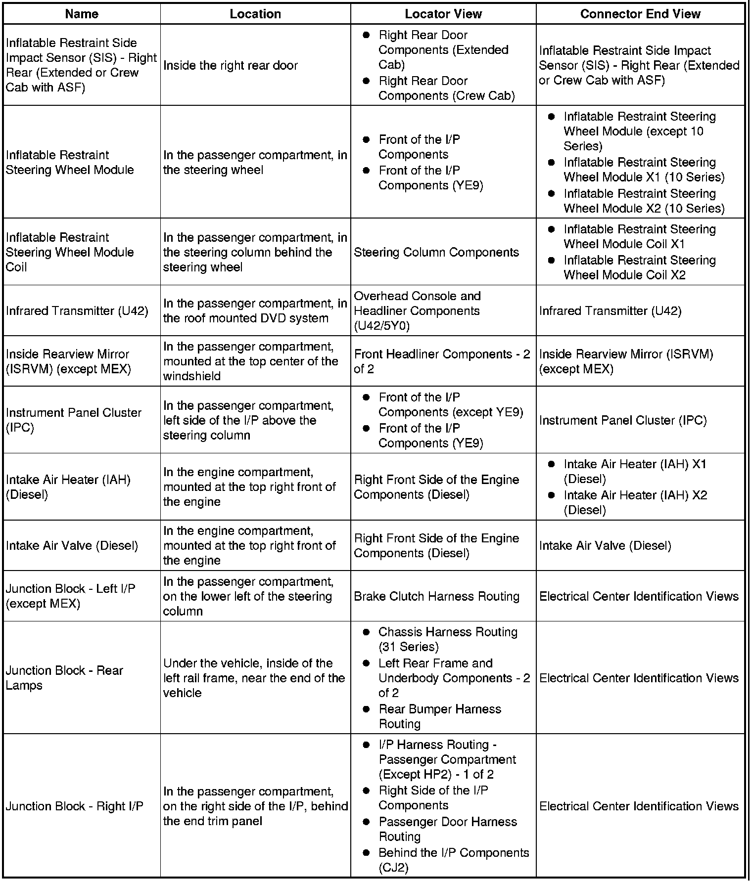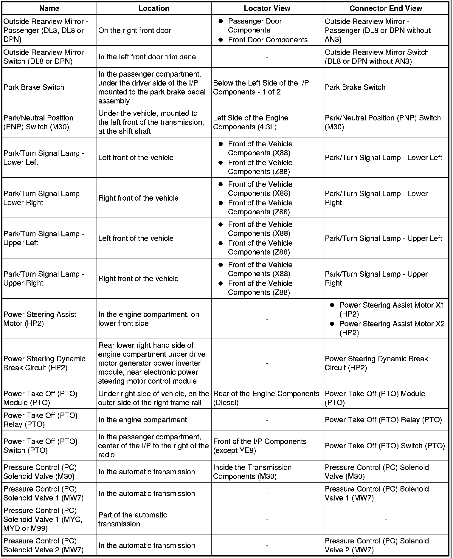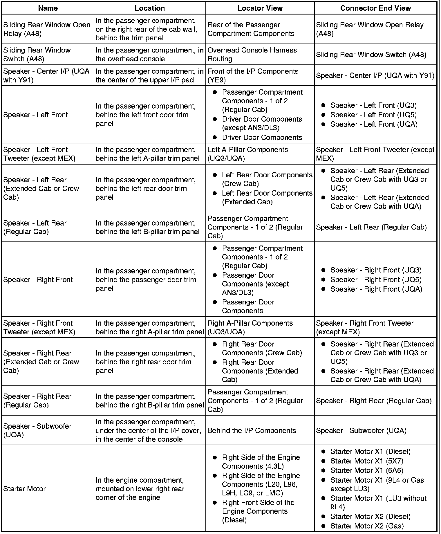 Master Electrical Component List