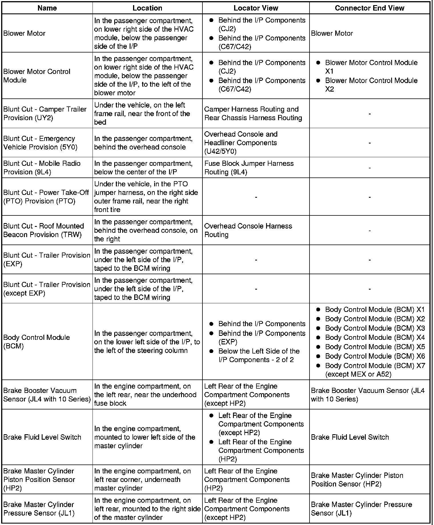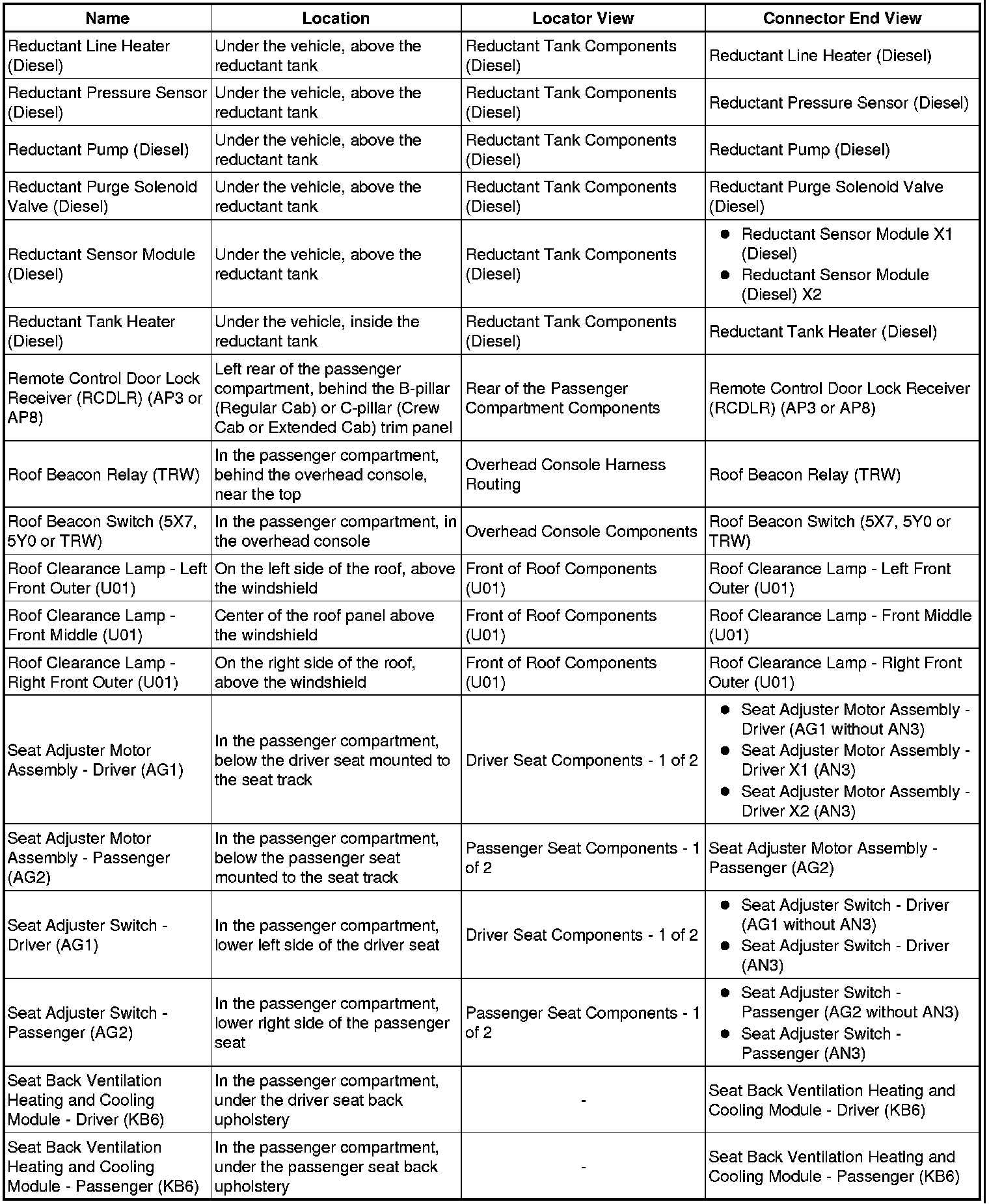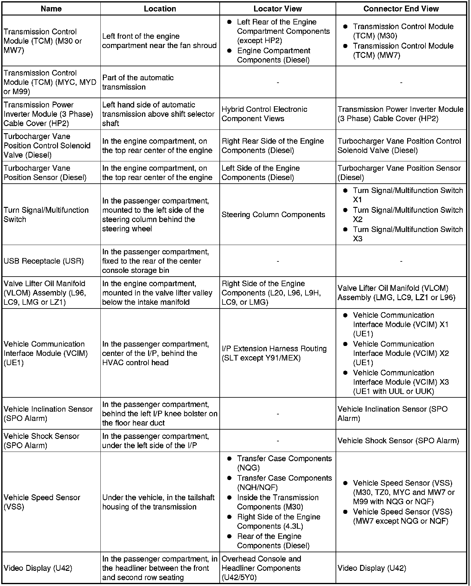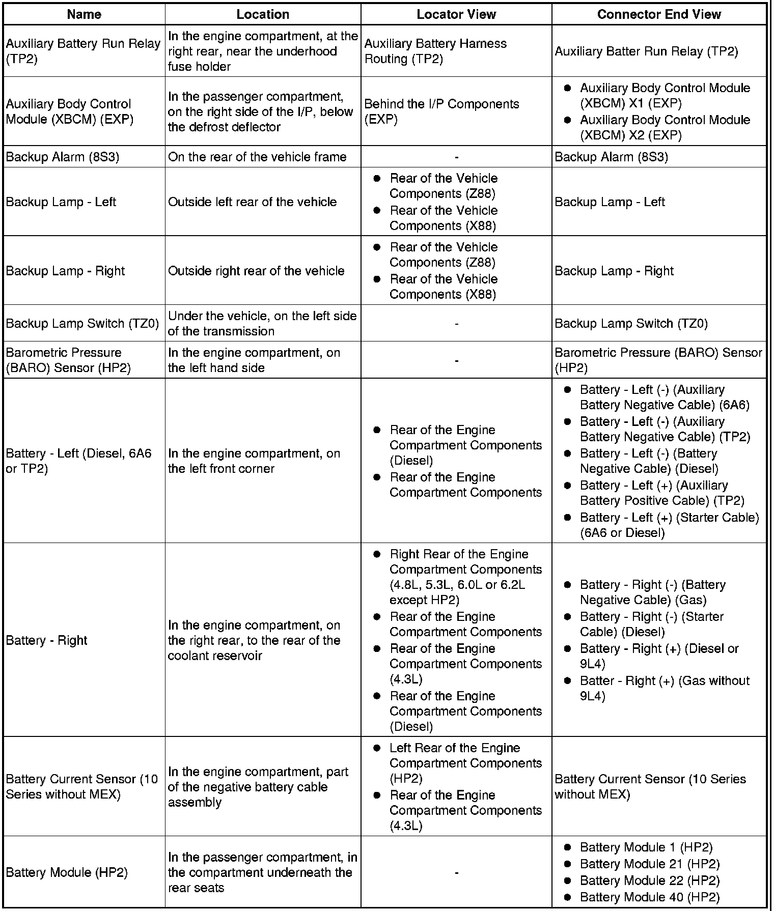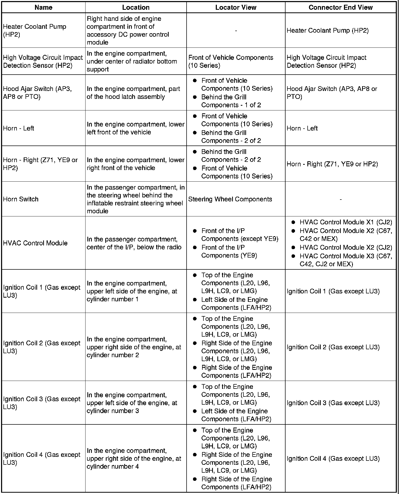 Master Electrical Component List