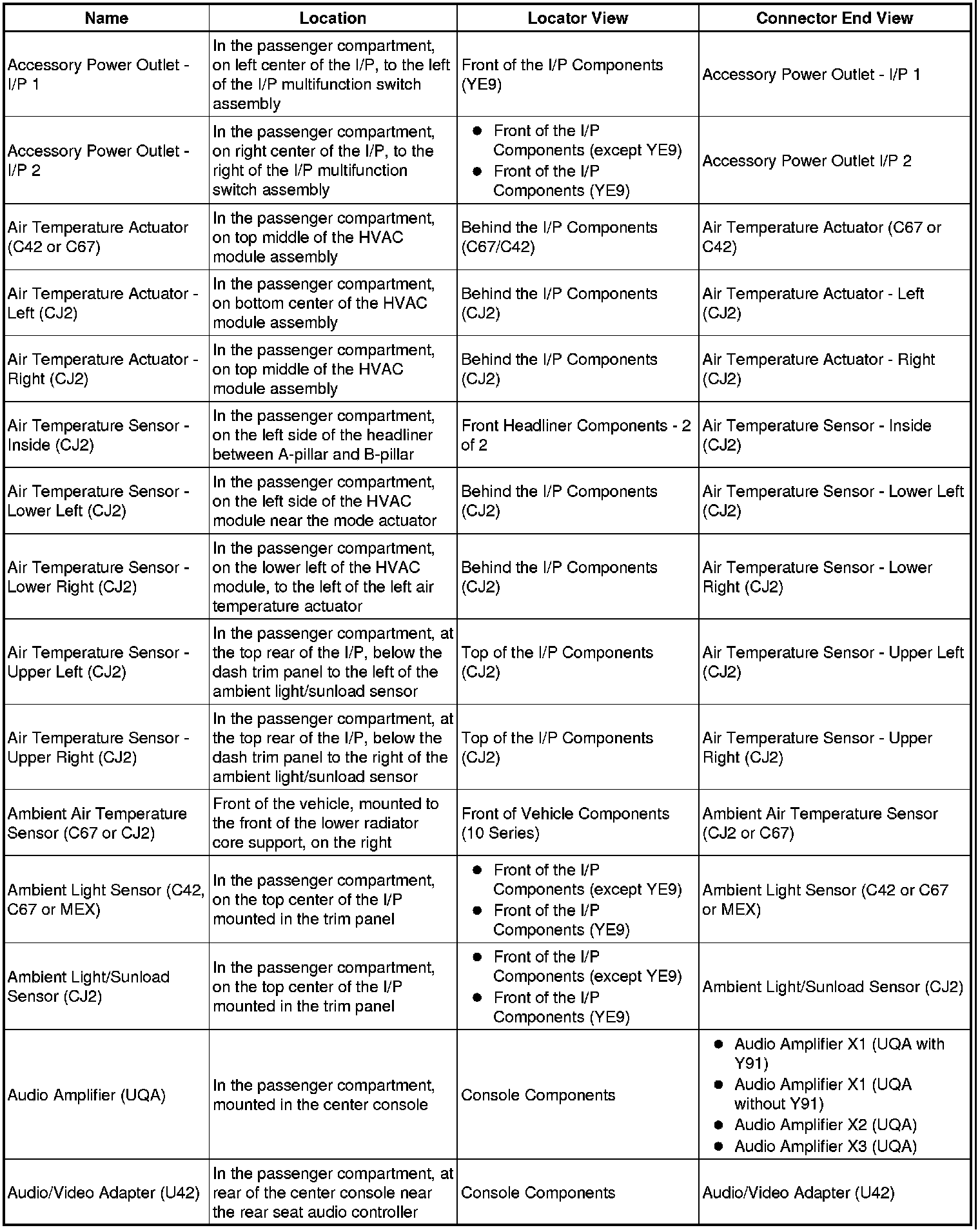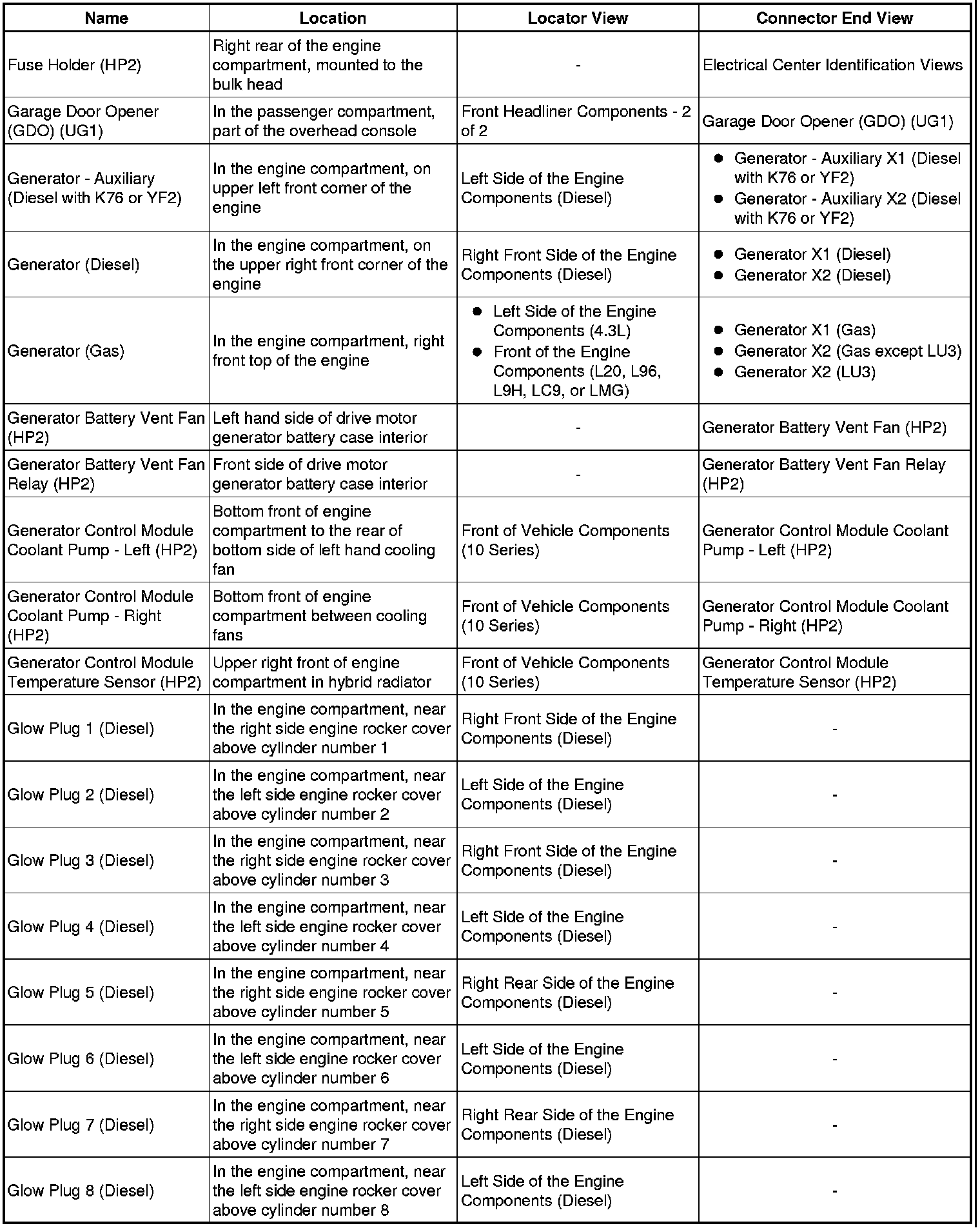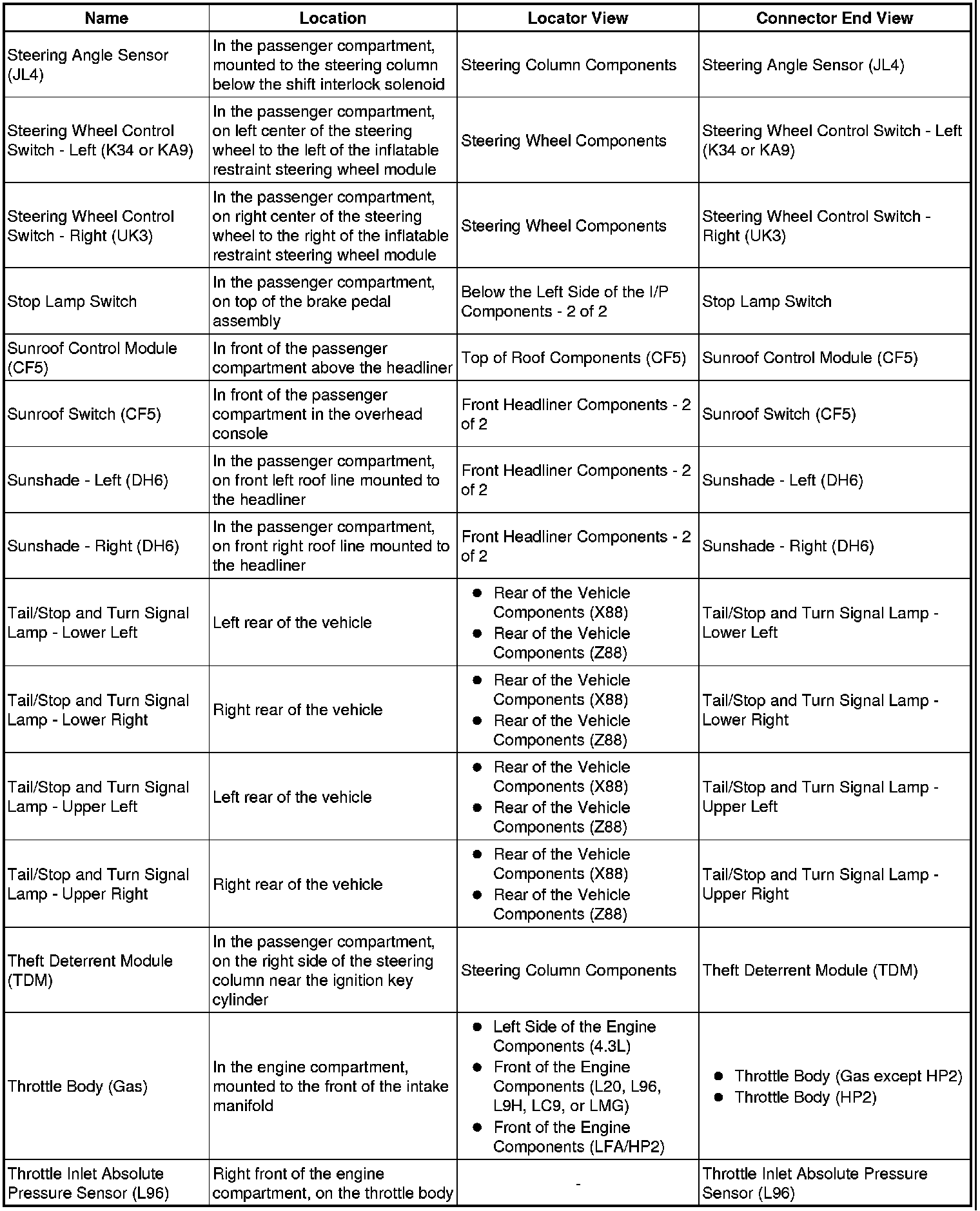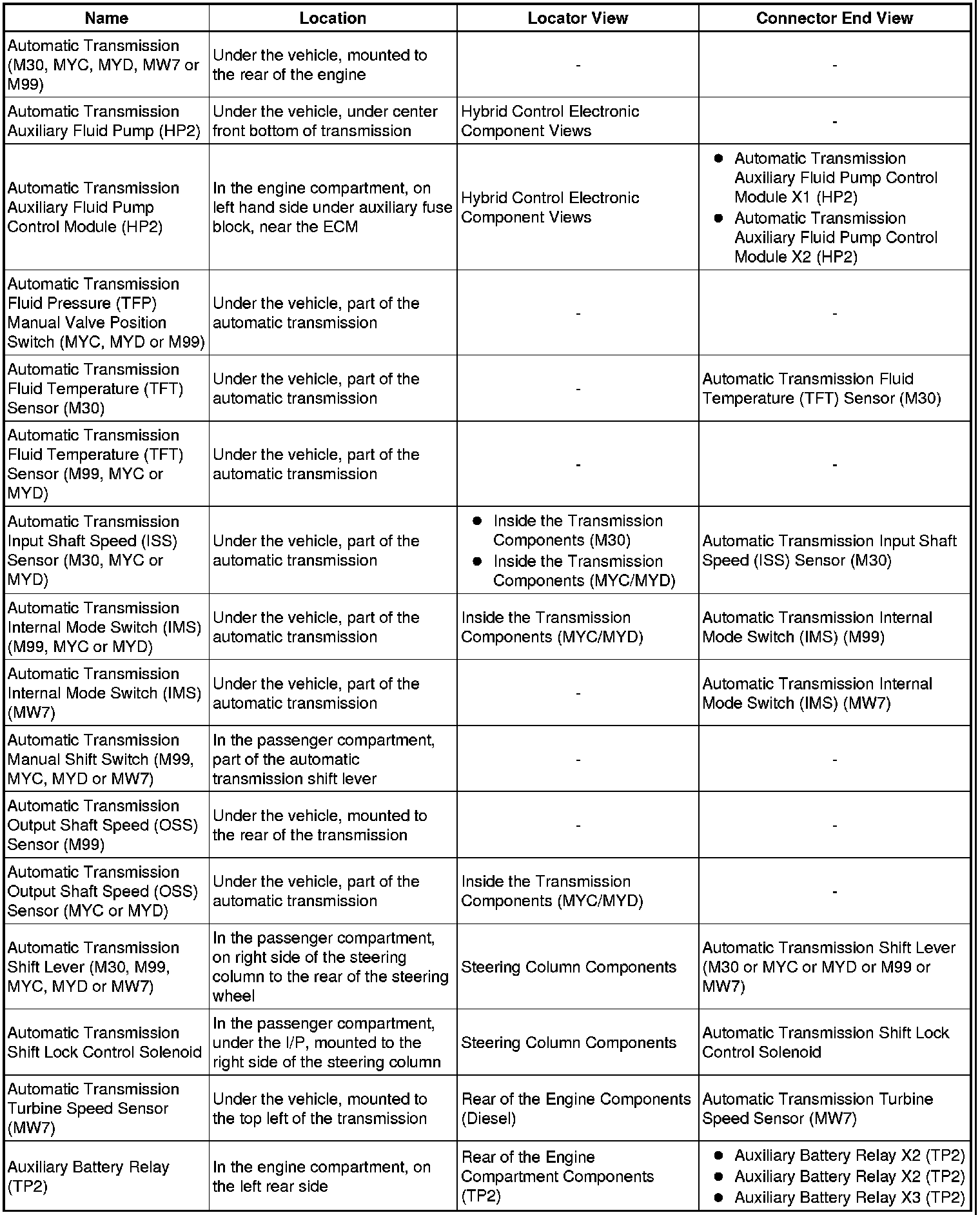 Master Electrical Component List
