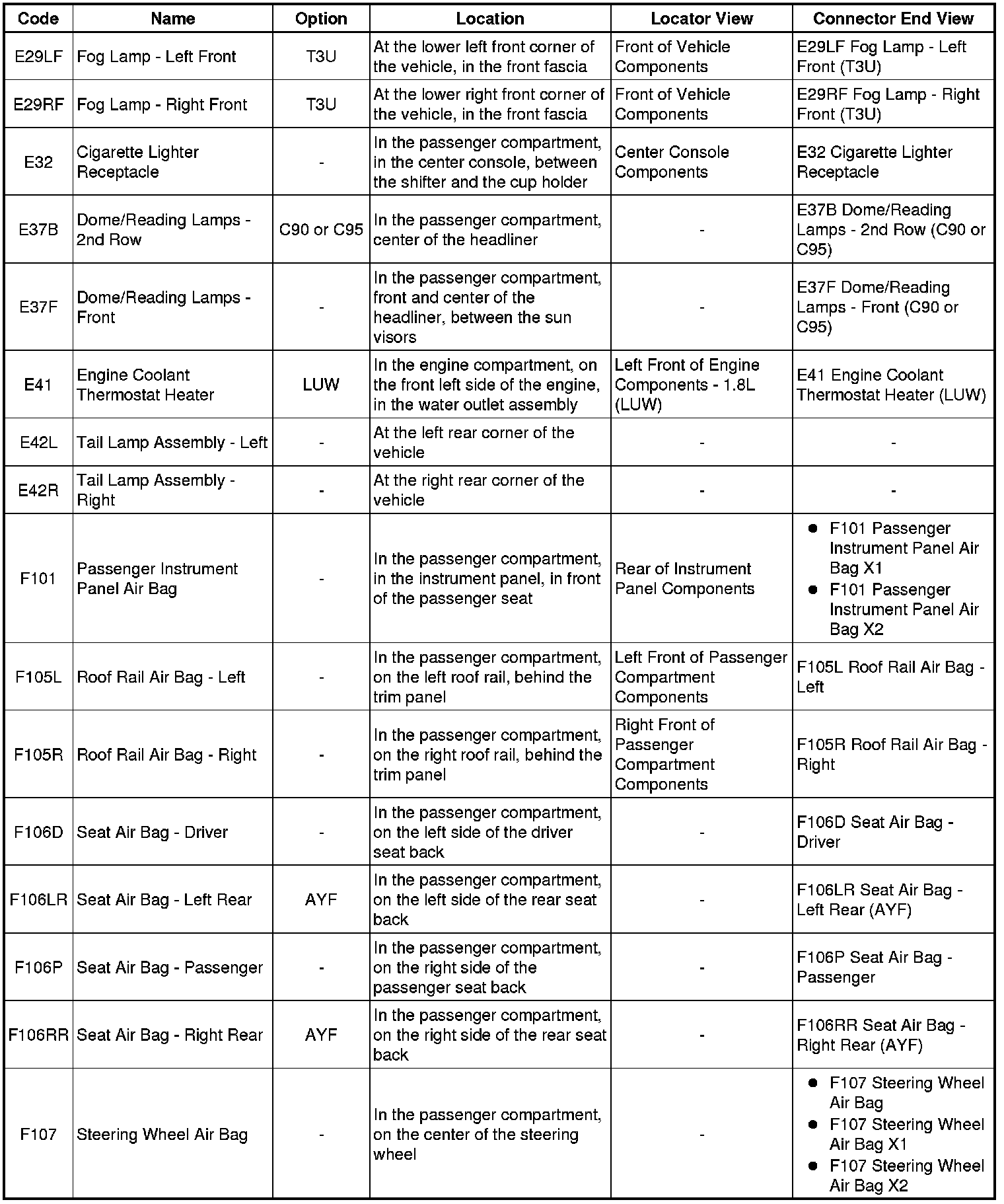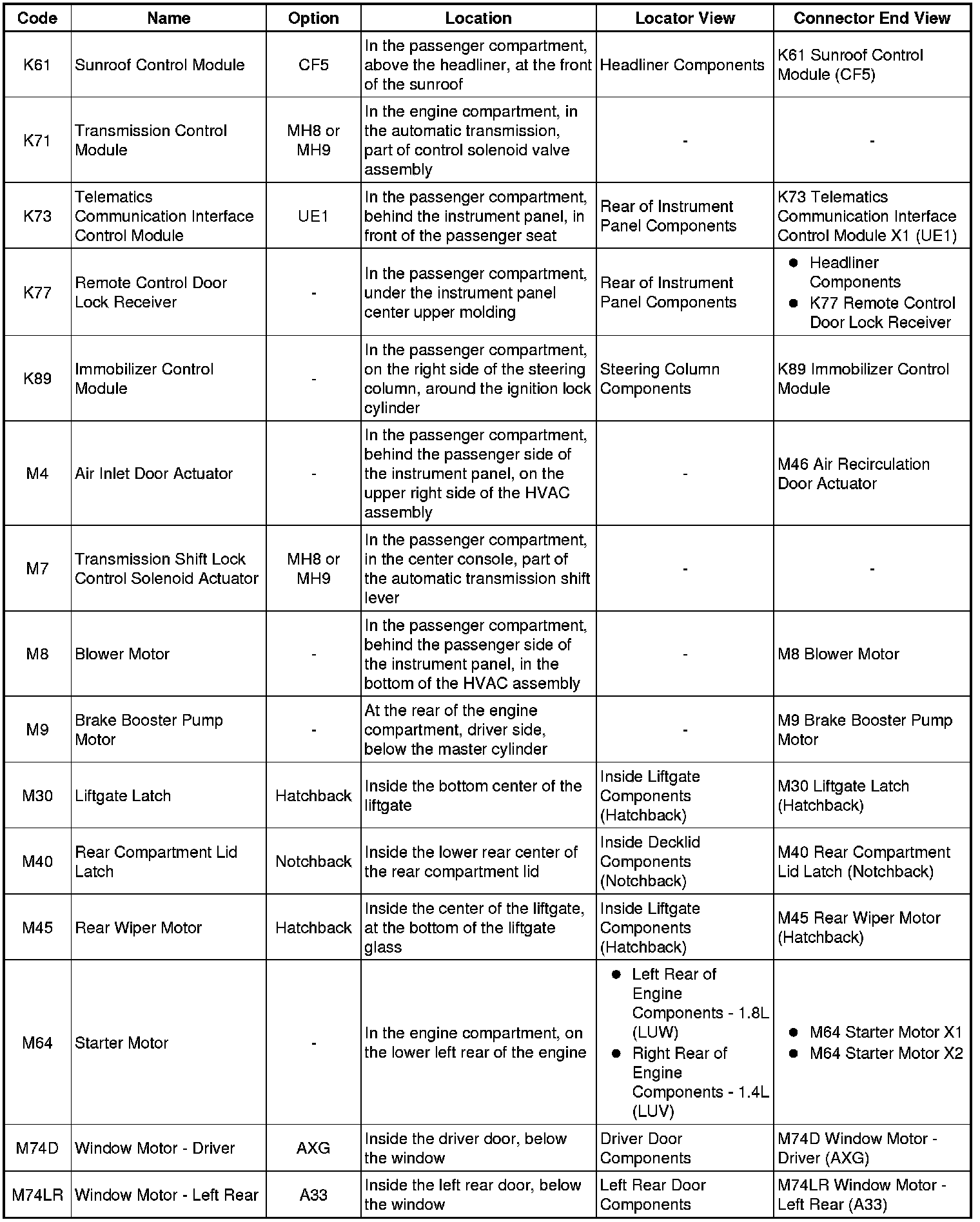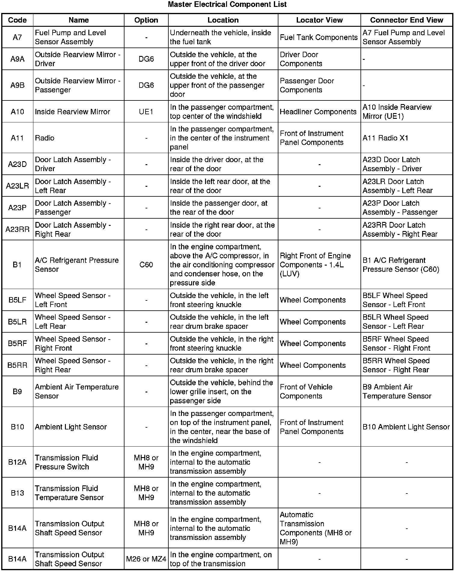 Master Electrical Component List