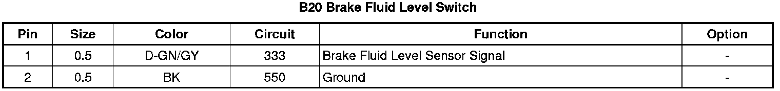 B20 Brake Fluid Level Switch