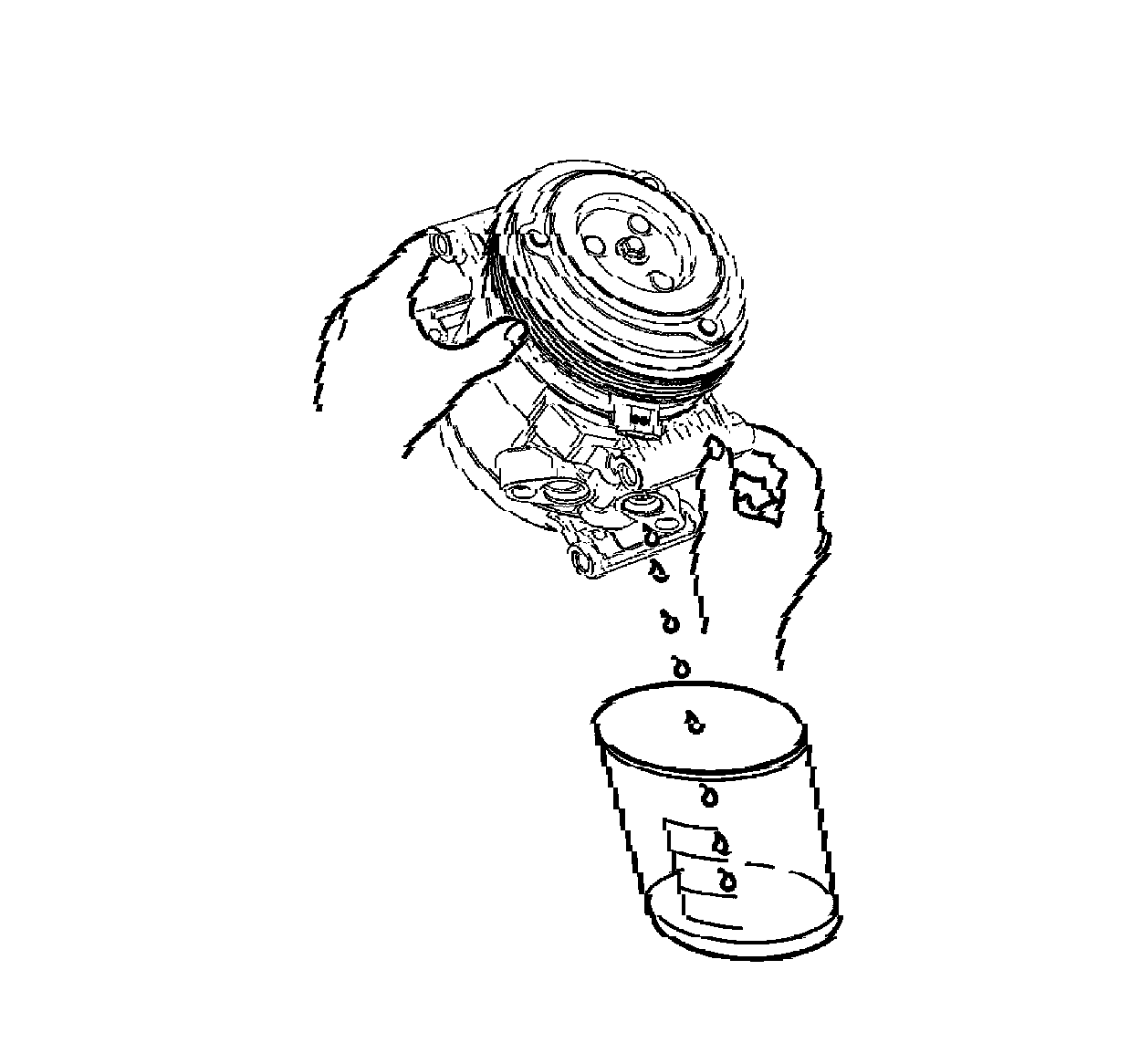 1. Drain the oil from both the suction and discharge ports of the removed compressor into a clean, graduated container. Rotate the compressor shaft to assist in draining the compressor.