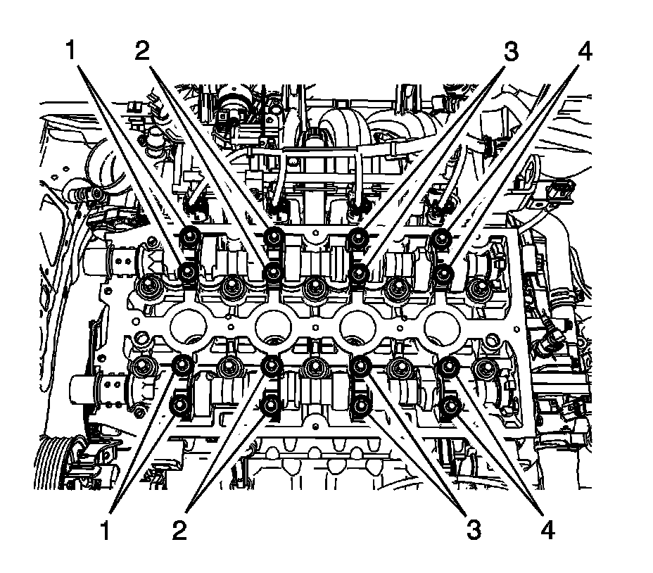Camshaft Bearing Caps in sequence (2, 3, 1, 4) 8 Nm (71 lb in)