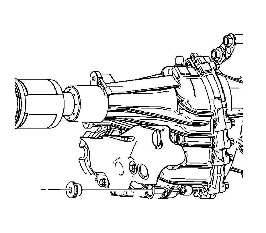 3. Fill the transfer case with lubricant to the bottom of the fill plug, or 1 Liter (34 oz). Refer to Adhesives, Fluids, Lubricants, and Sealers Fluid Type Specifications for lubricant recommendation.
