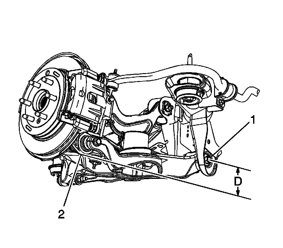 4. Use the outer flat spot 2 on the knuckle as the reference point for the D height measurement.