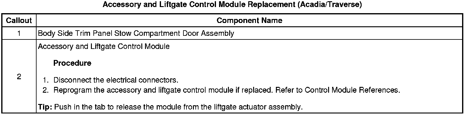 Accessory and Liftgate Control Module Replacement (Acadia/Traverse)