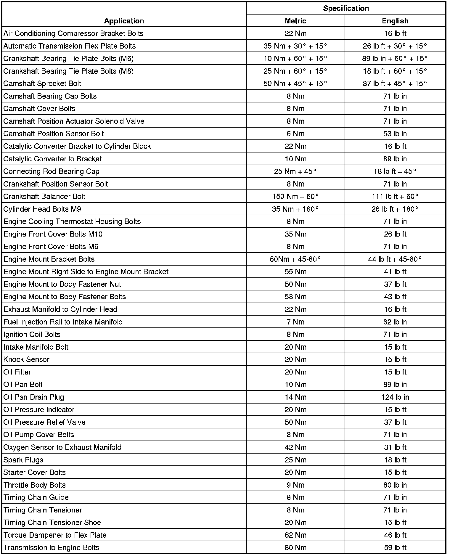 Fastener Tightening Specifications