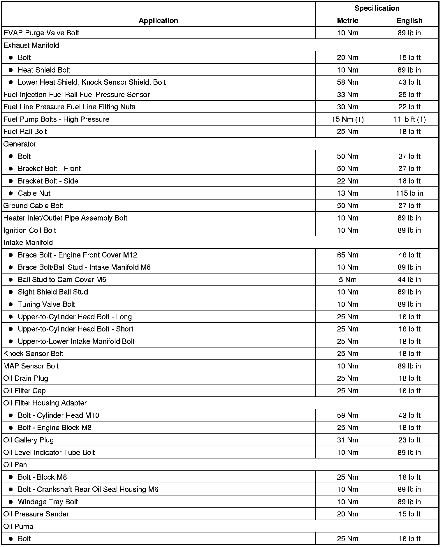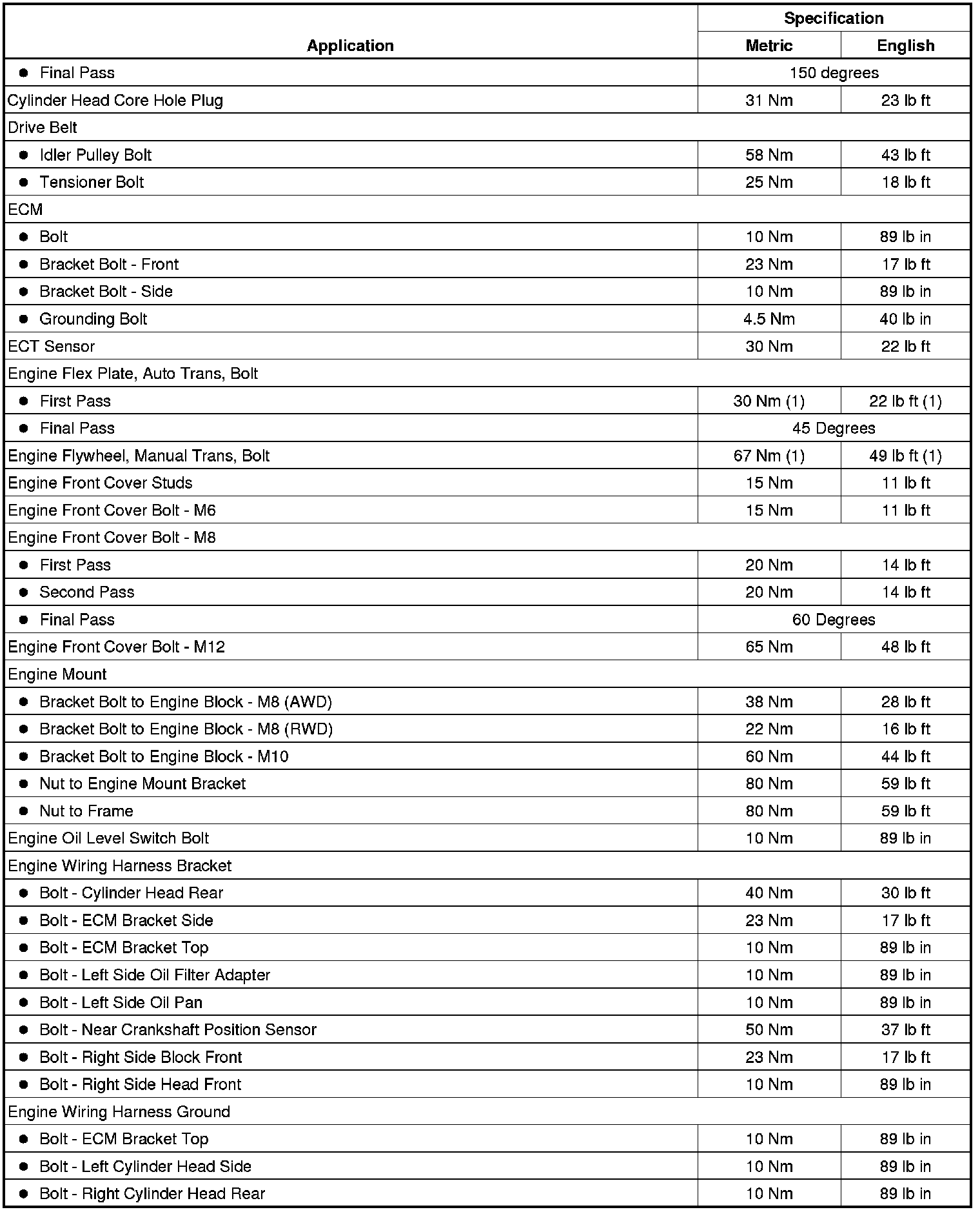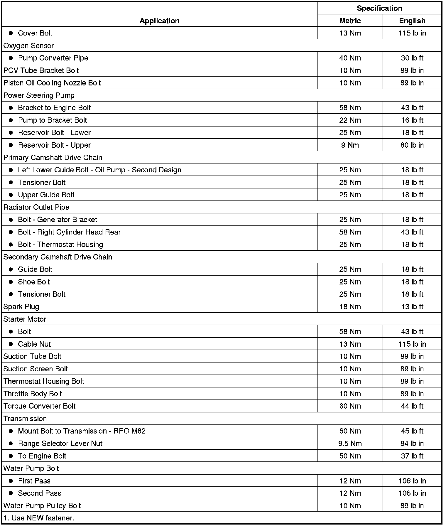 Fastener Tightening Specifications
