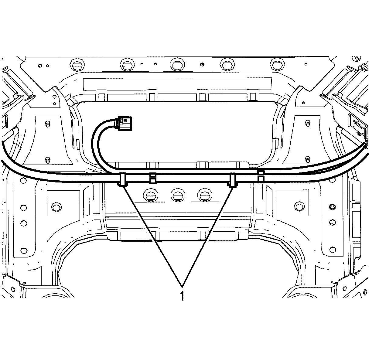 11.Disconnect the electrical harness retainers (1) securing the engine harness to the frame.