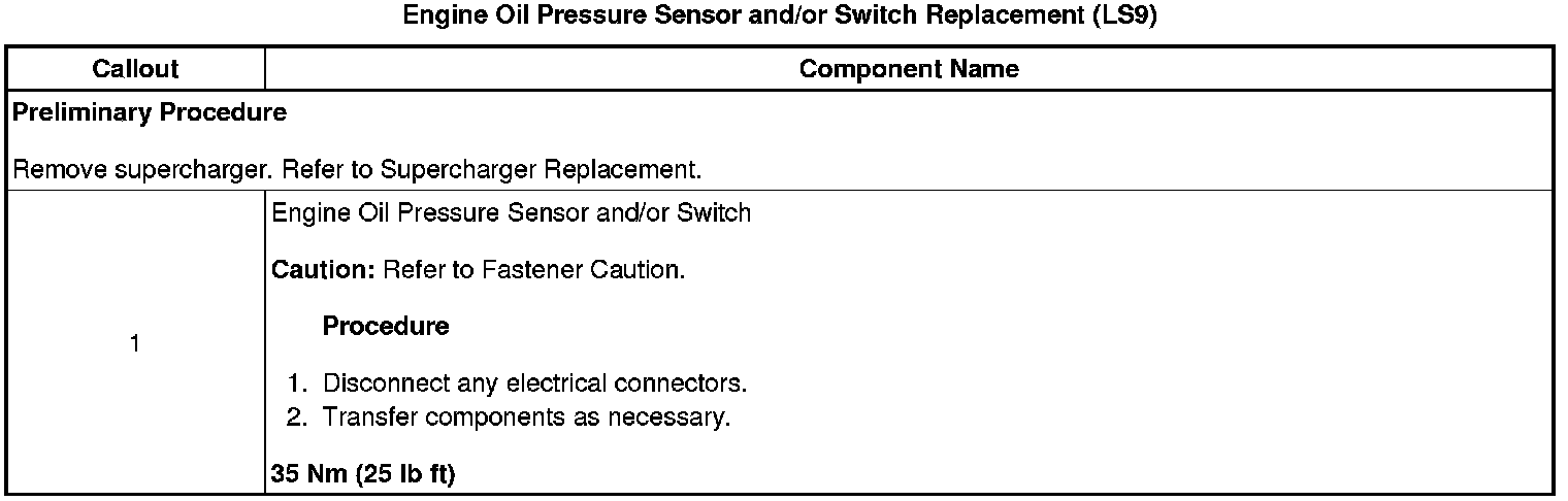 Engine Oil Pressure Sensor and/or Switch Replacement (LS9)