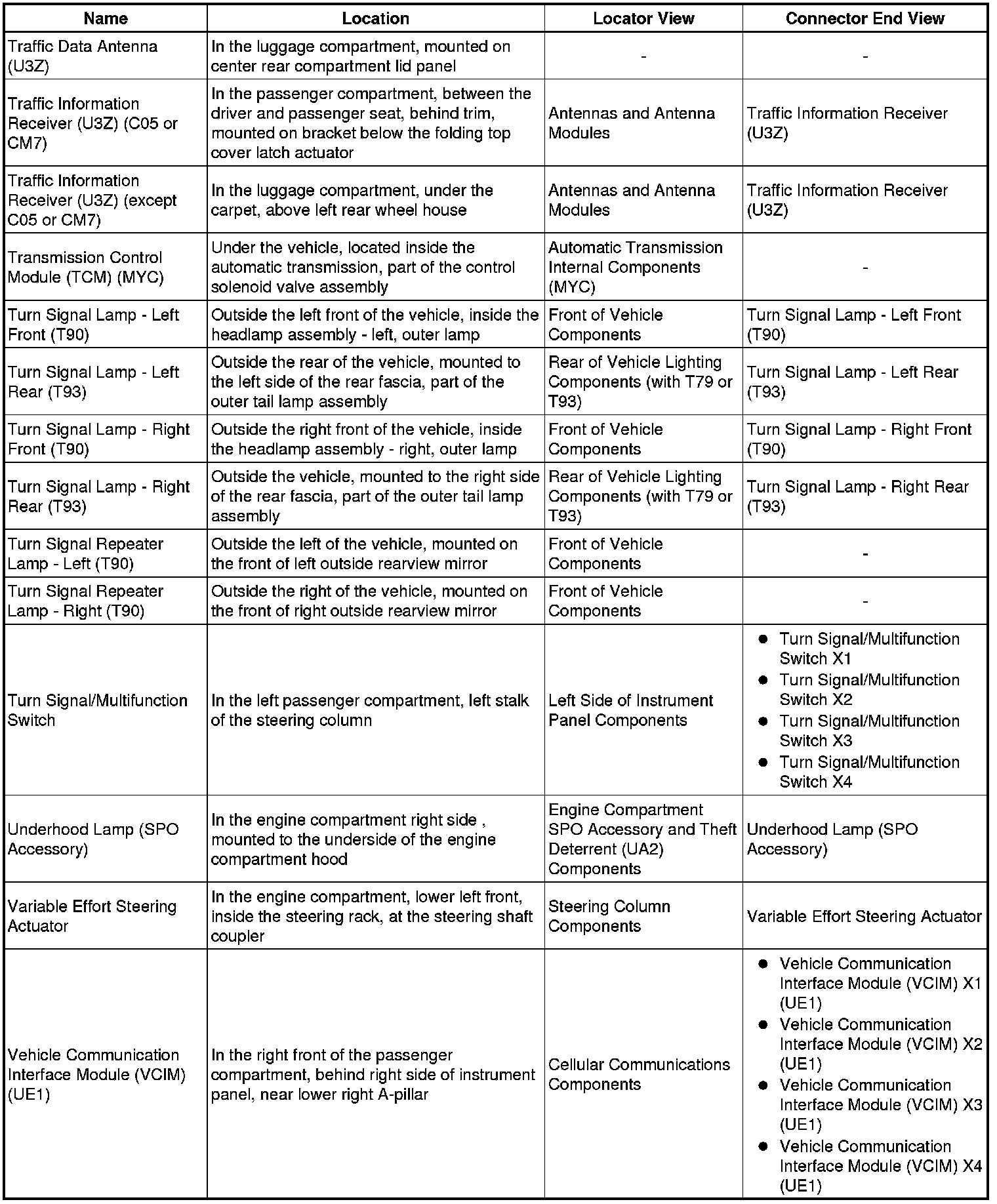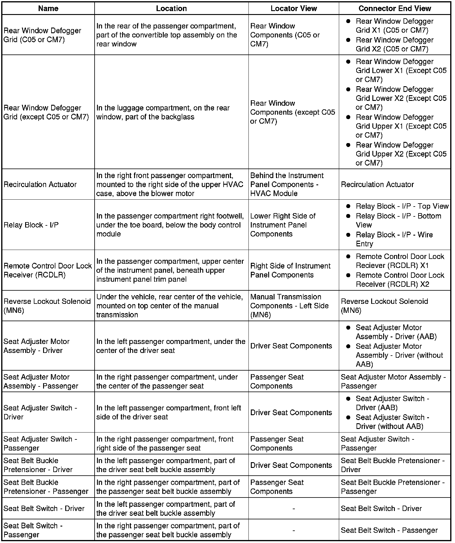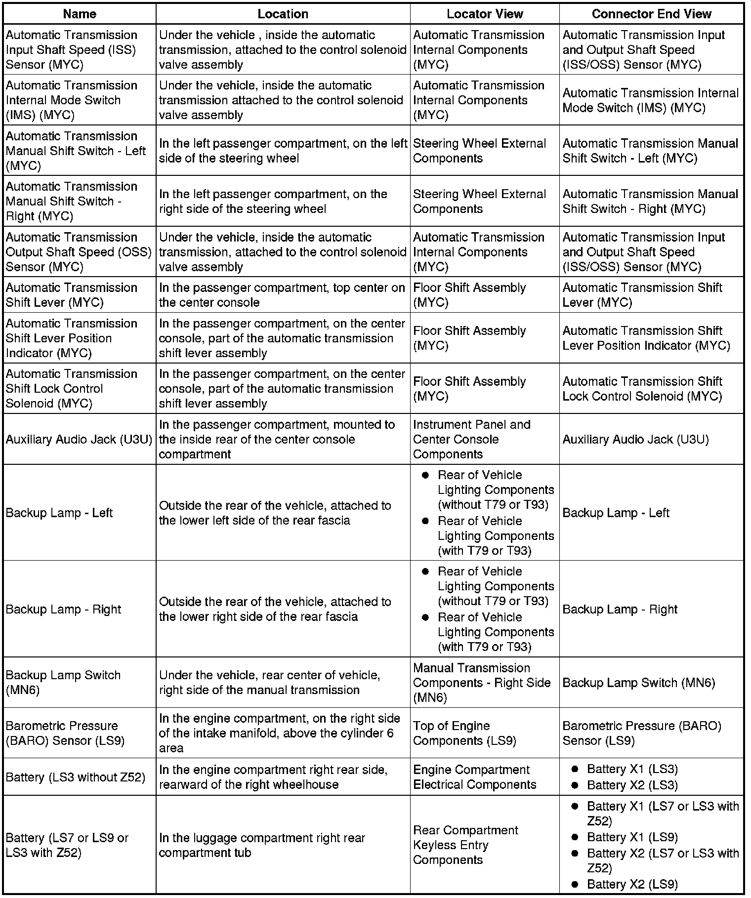 Master Electrical Component List