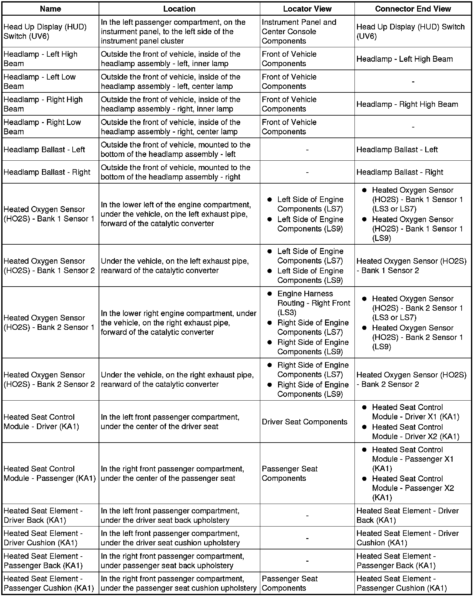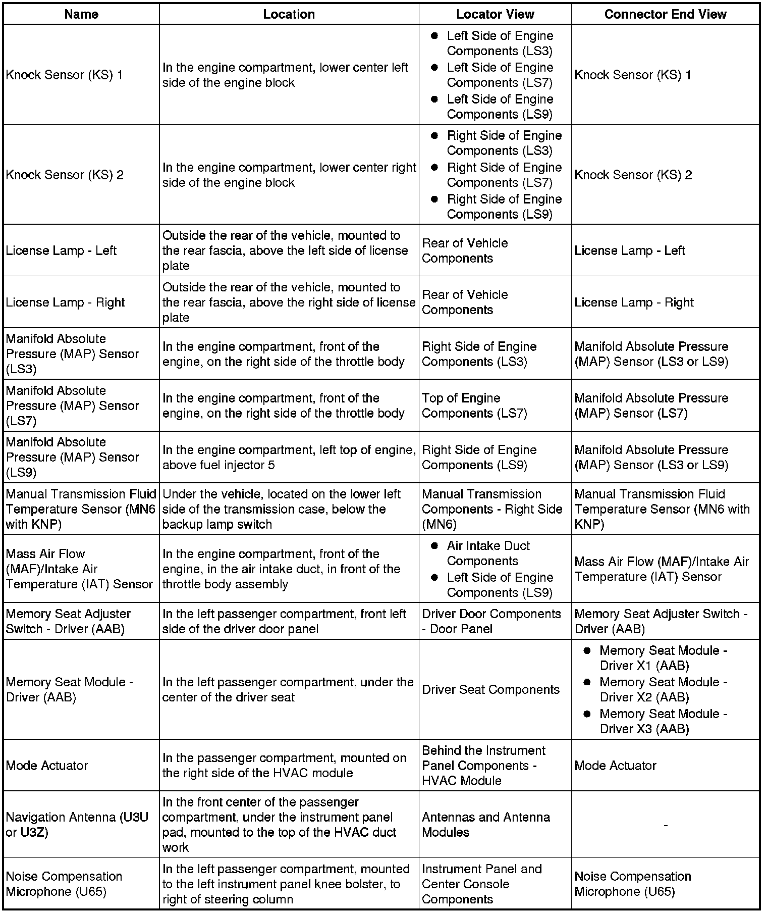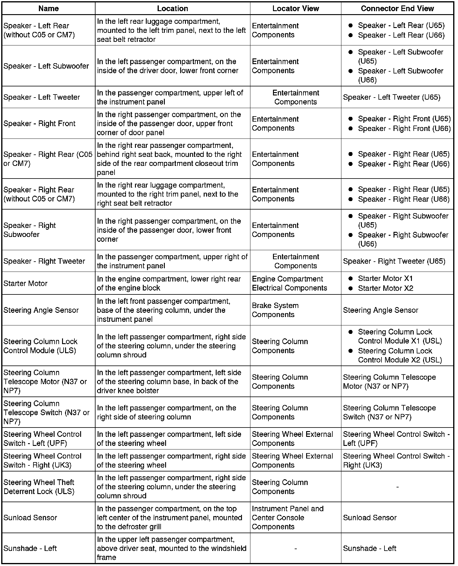 Master Electrical Component List