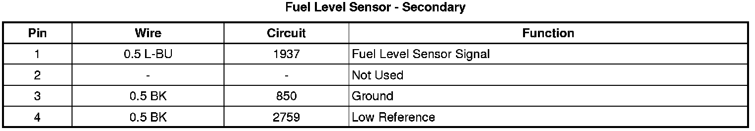 Fuel Level Sensor: Diagrams