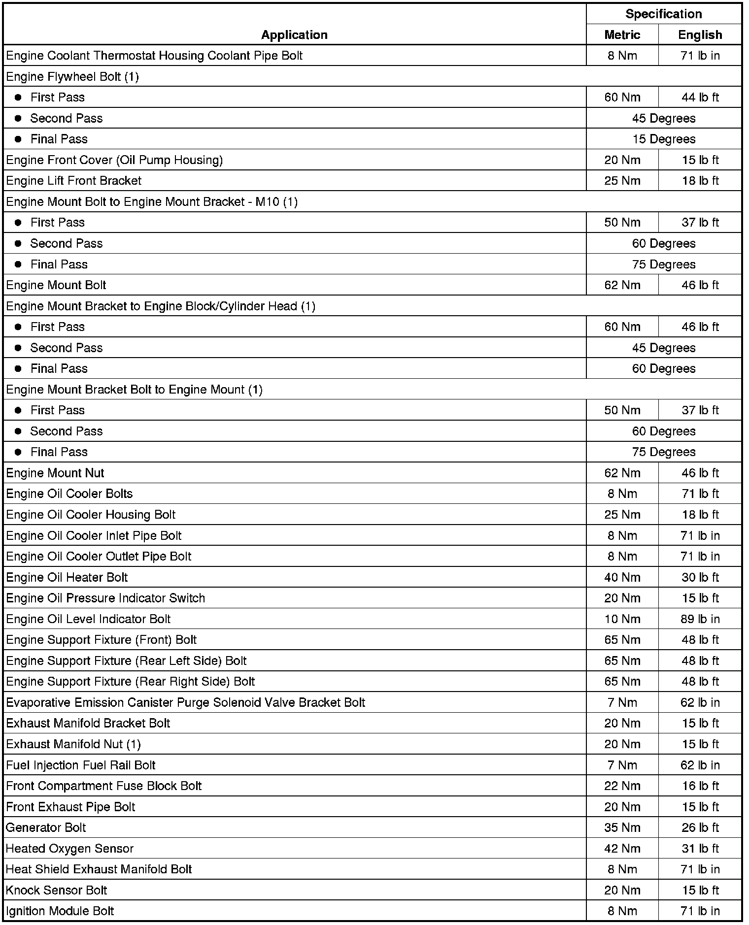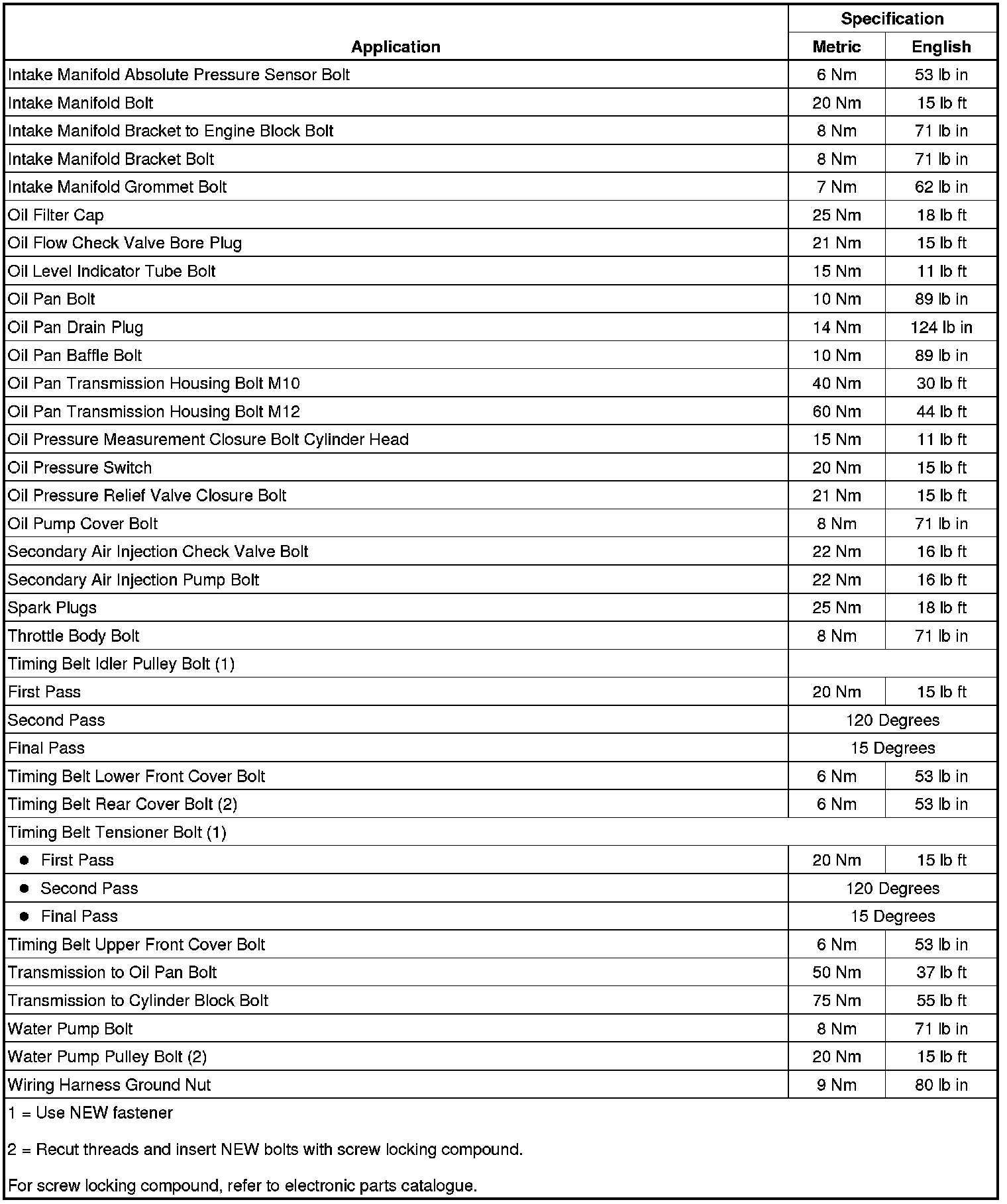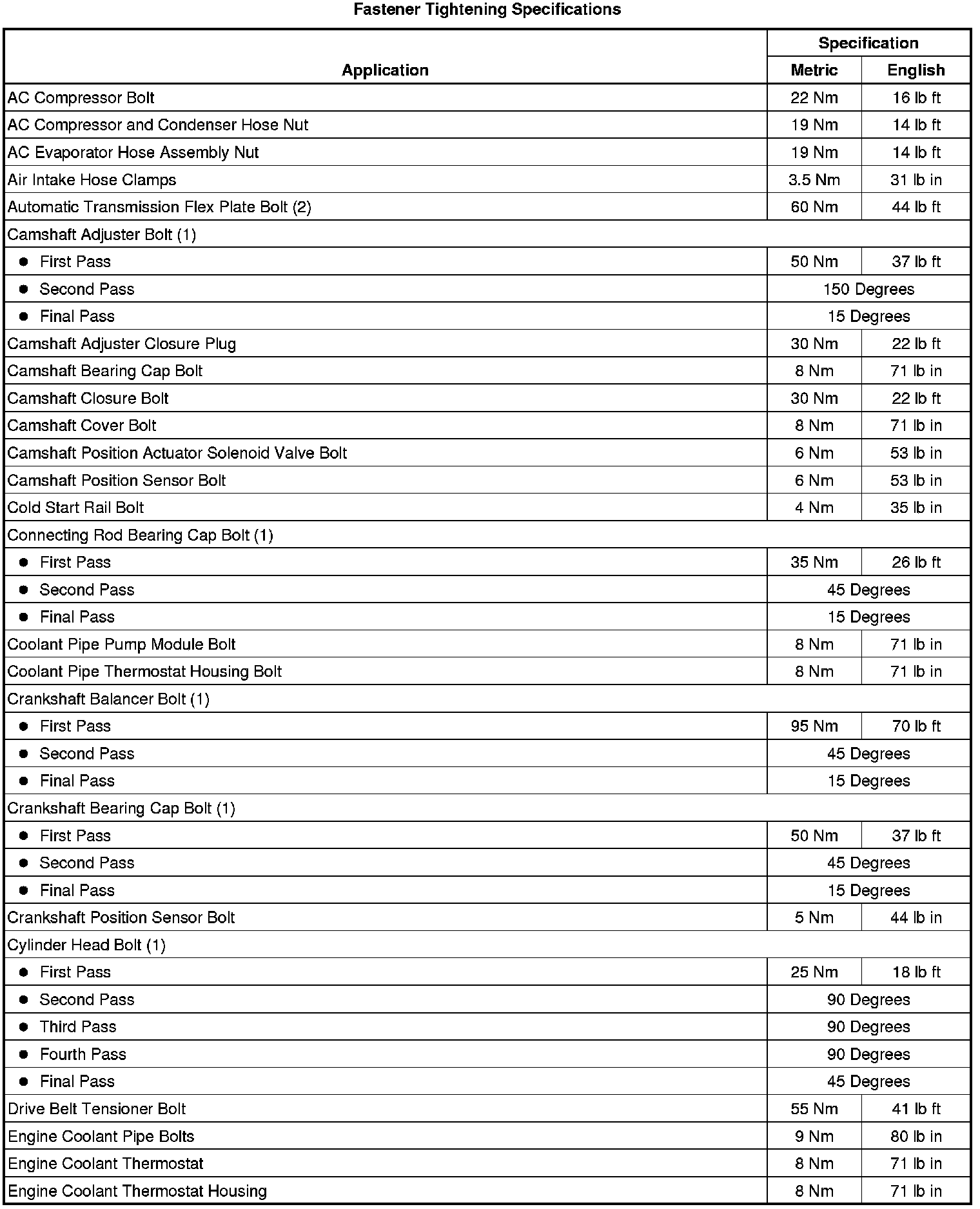Fastener Tightening Specifications