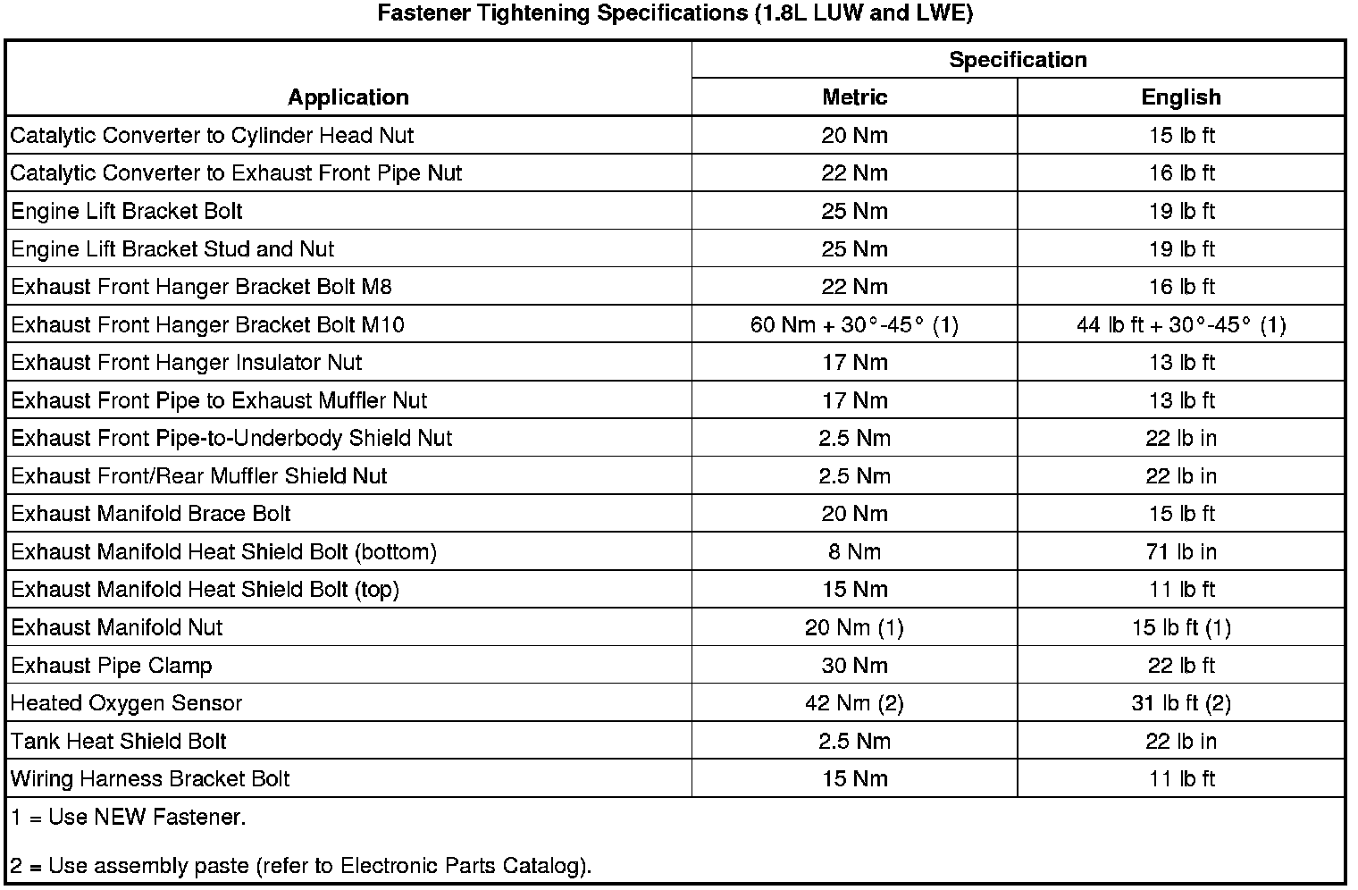 Fastener Tightening Specifications (1.8L LUW and LWE)