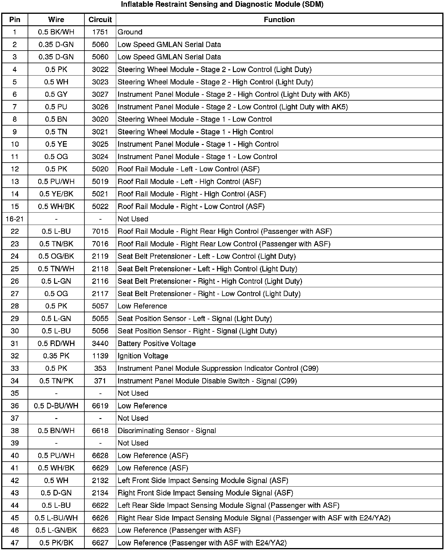 Inflatable Restraint Sensing and Diagnostic Module (SDM)