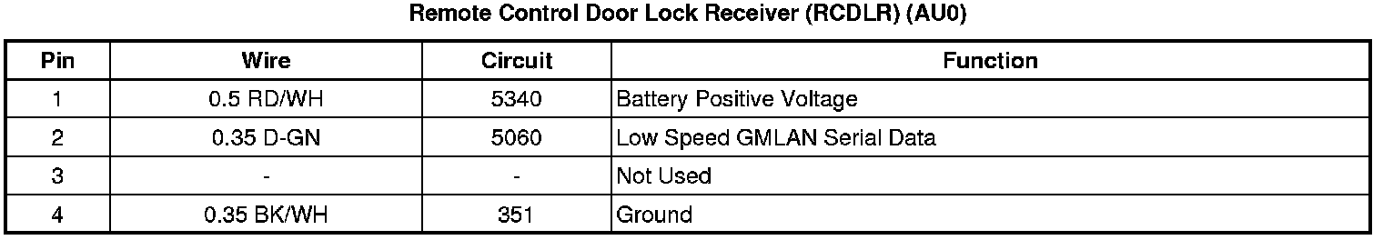 Remote Control Door Lock Receiver (RCDLR) (AU0)