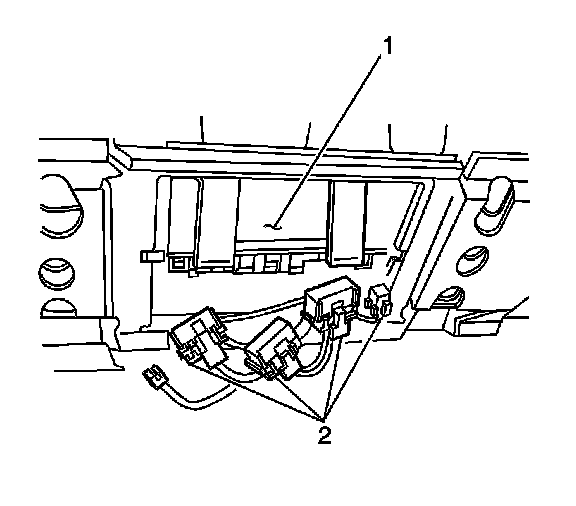 1. Remove the right side knee bolster trim panel. Refer to Passenger Knee Bolster Replacement Passenger Knee Bolster Replacement.