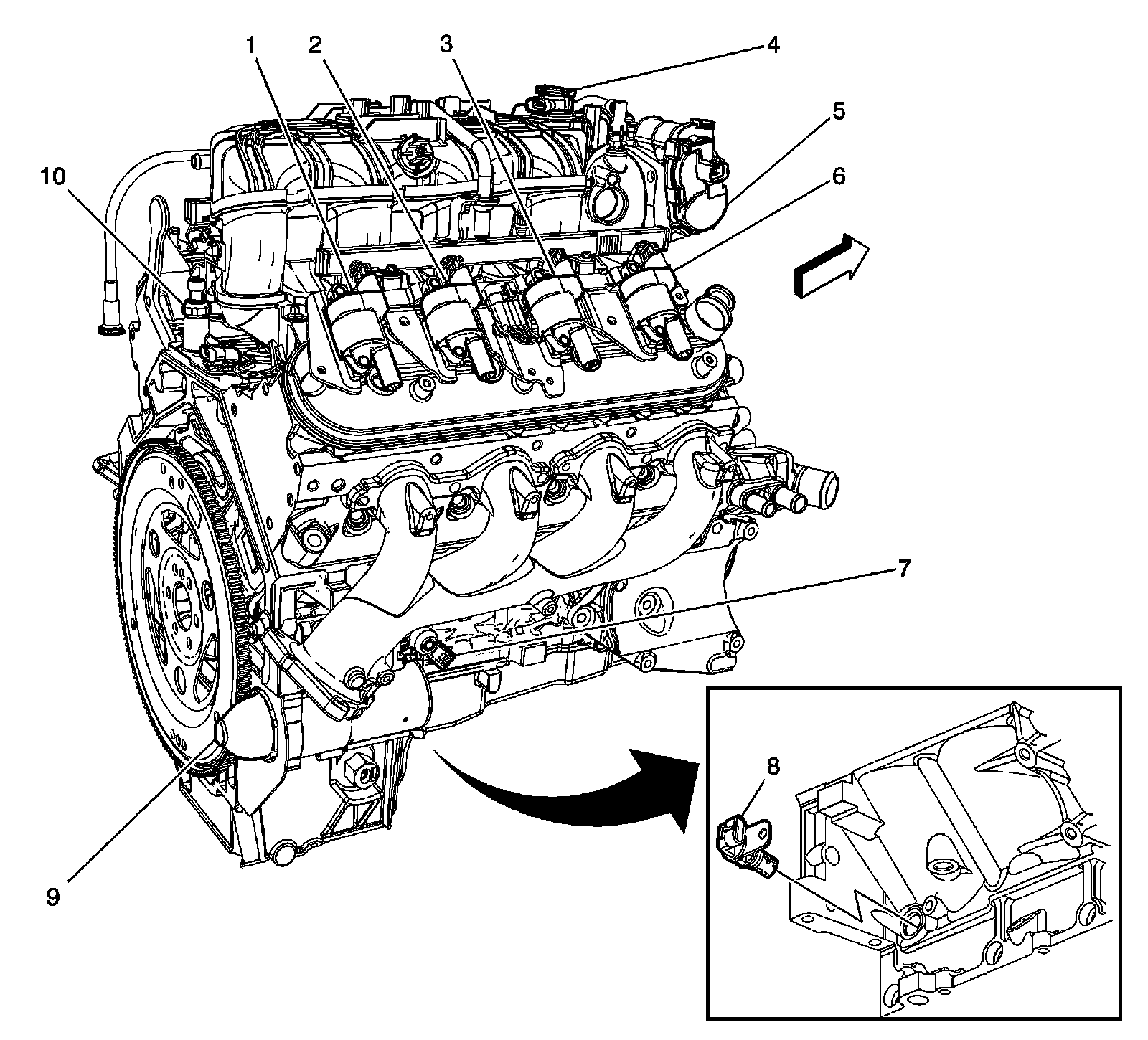 Right Side of the Engine Components (LC8, LMF, L20, or L96)