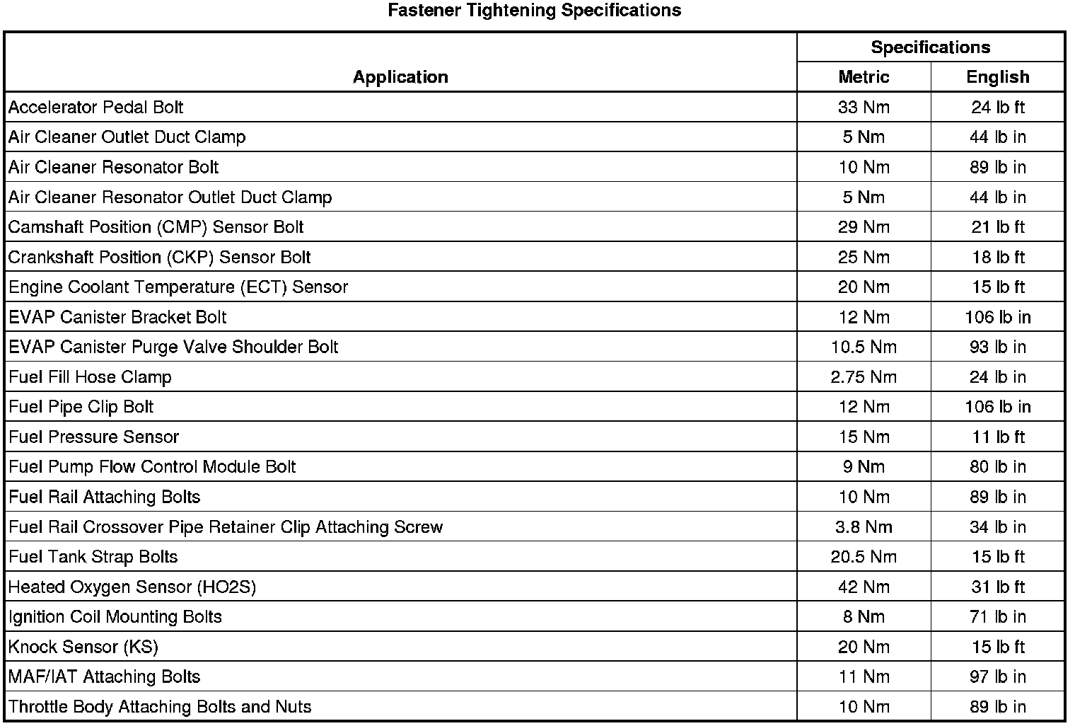 Fastener Tightening Specifications