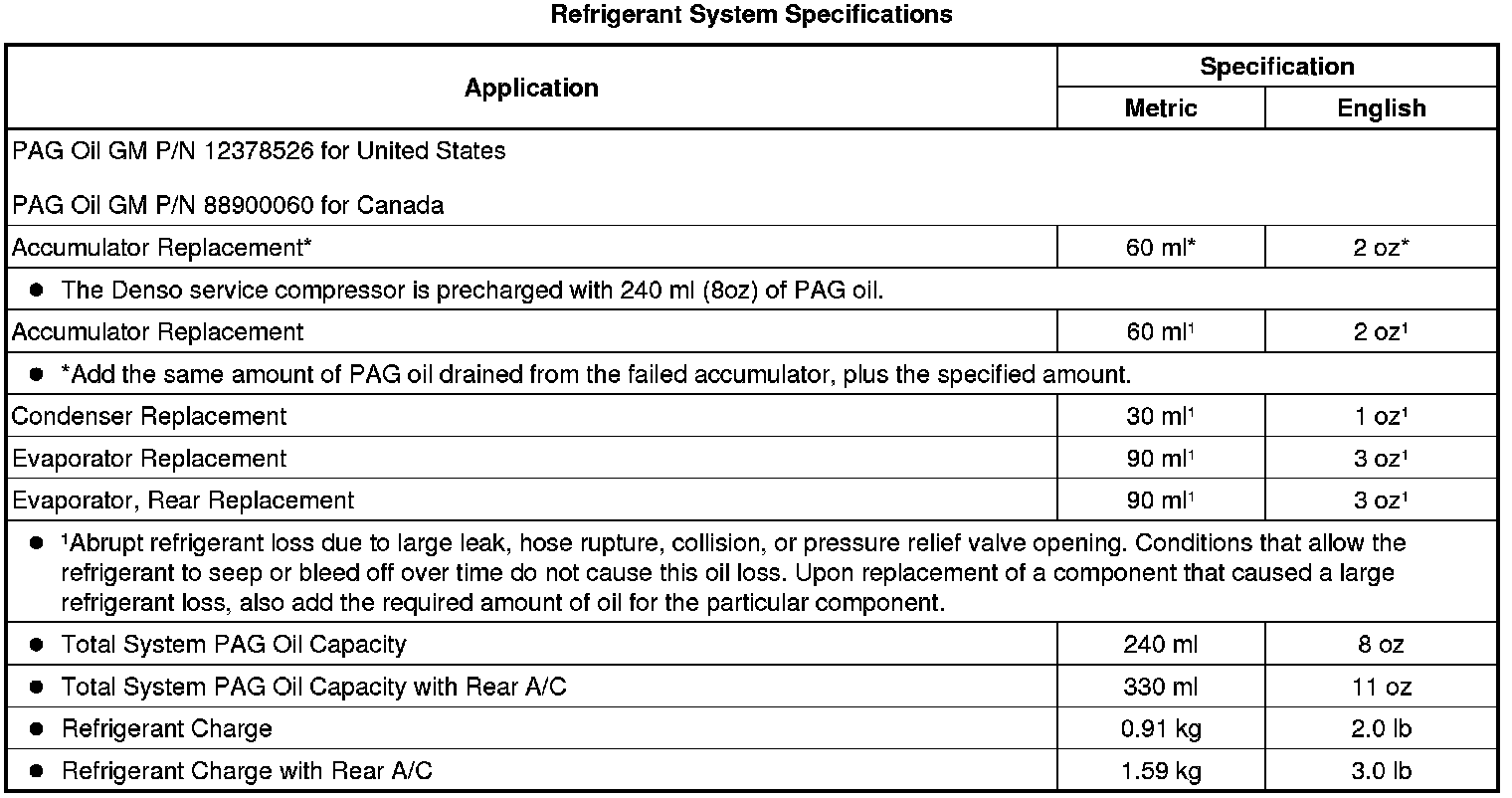 Refrigerant System Specifications