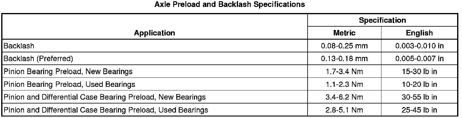 Axle Preload and Backlash Specifications