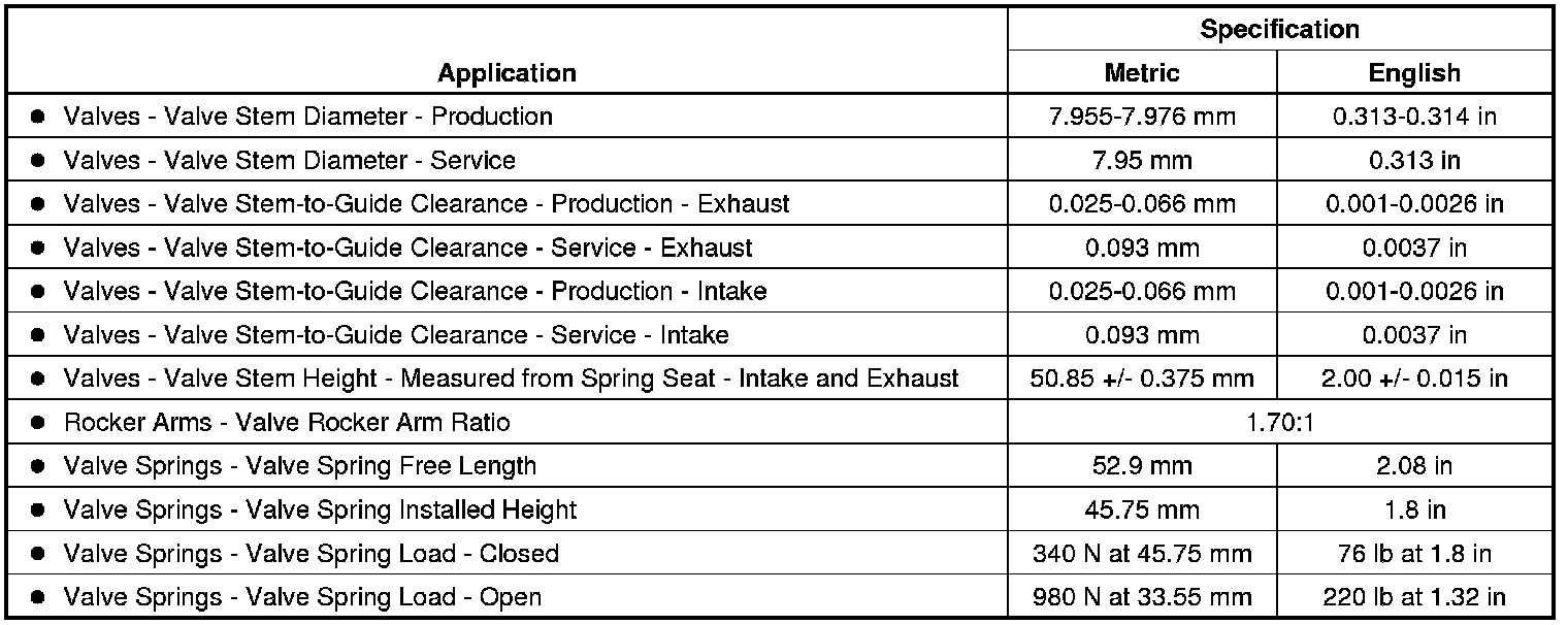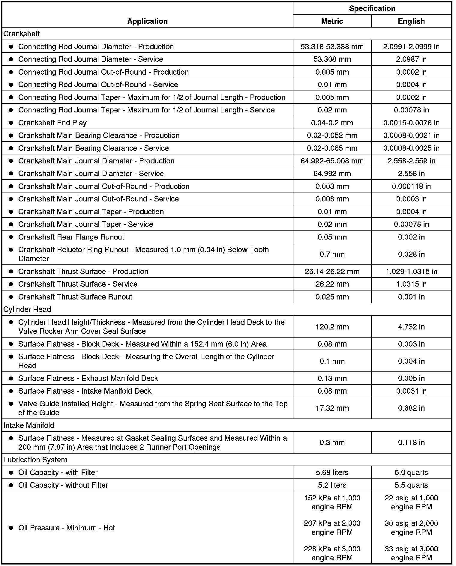 Engine Mechanical Specifications (RPO L20 VIN A)