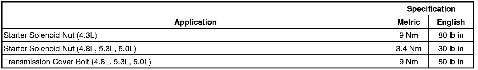 Starting and Charging: Specifications
