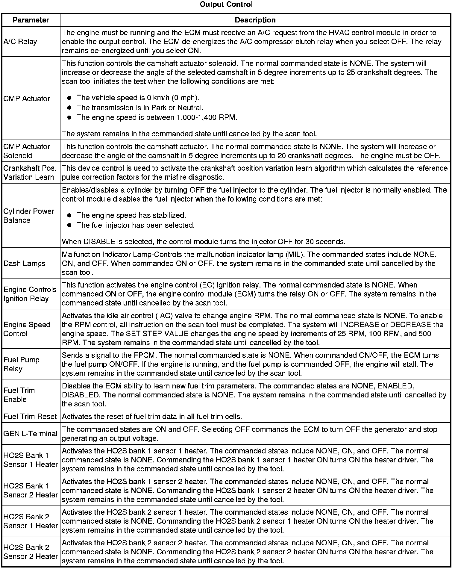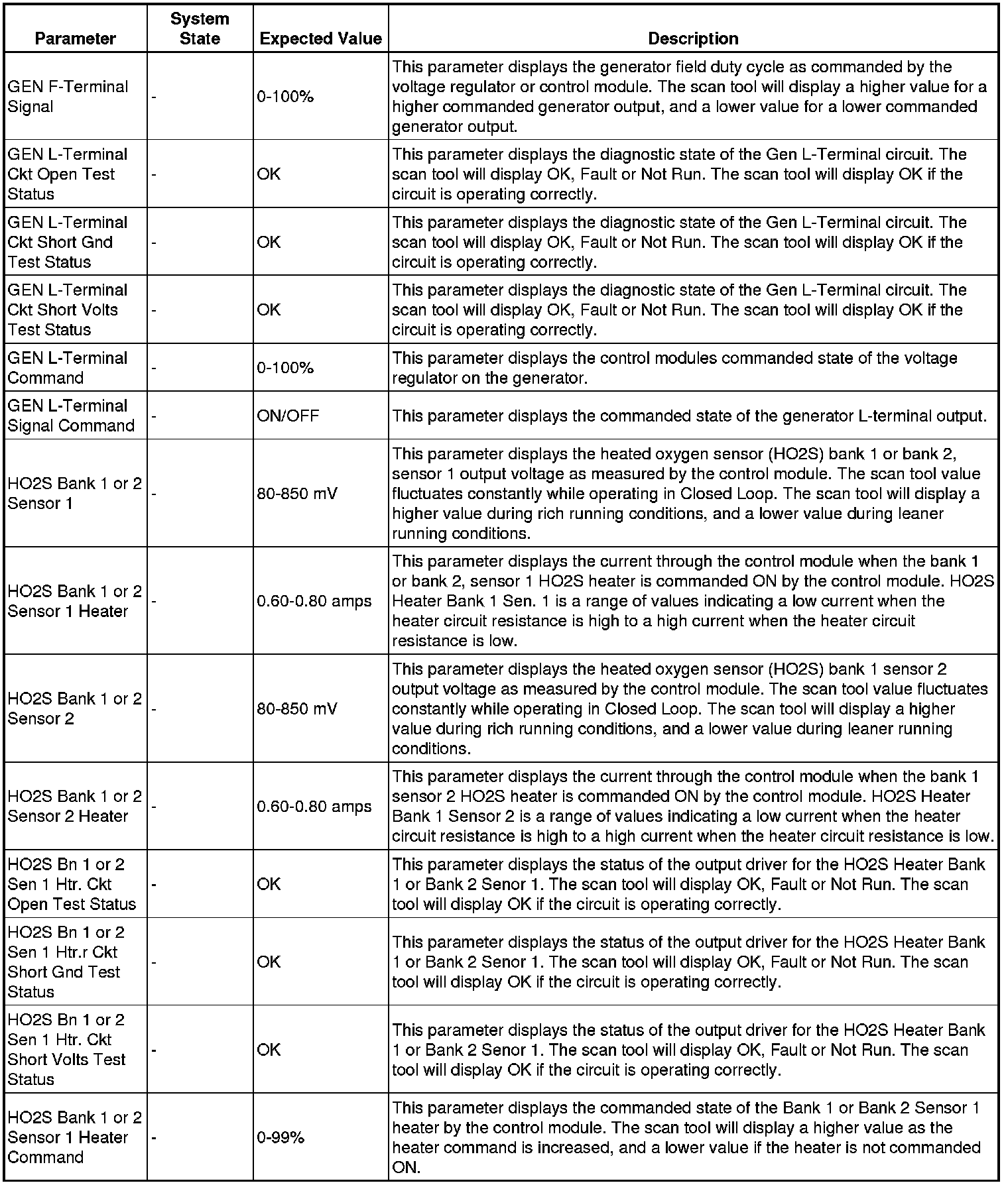 The Engine Control Module Scan Tool Data List contains all engine-related parameters that are available on the scan tool. The list is arranged in alphabetical order. A given parameter may appear in any one of the data lists, and in some cases may appear more than once, or in more than one data list in order to group certain related parameters together.
