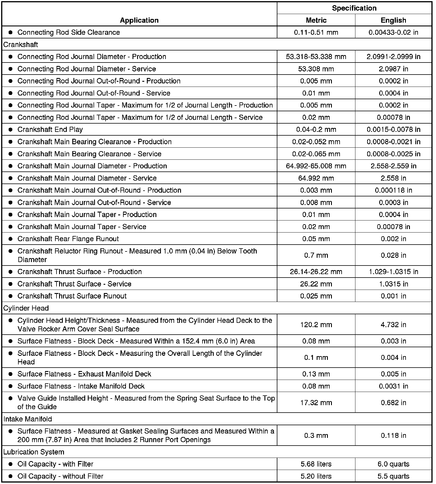 Engine Mechanical Specifications (RPO L96 VIN G)
