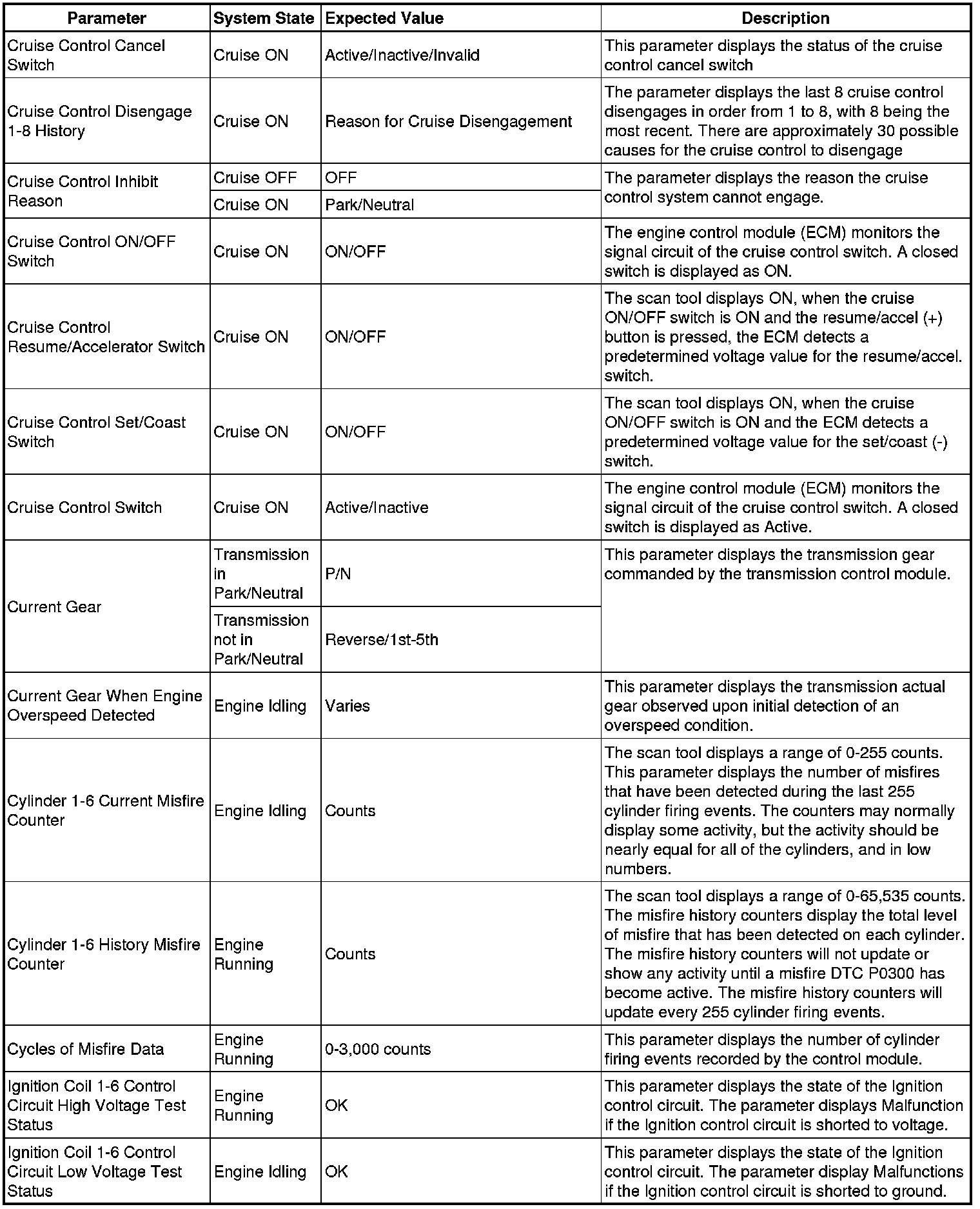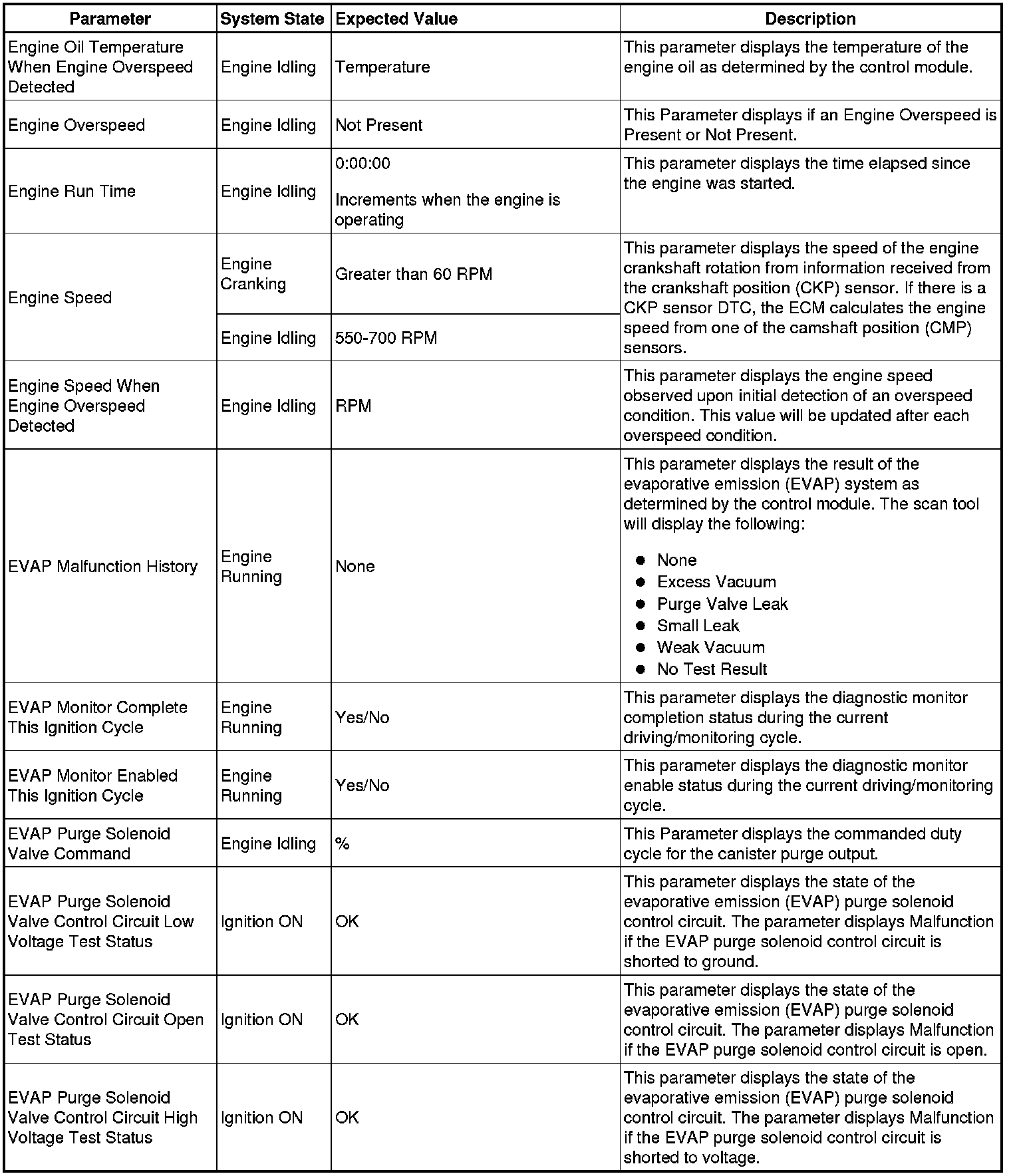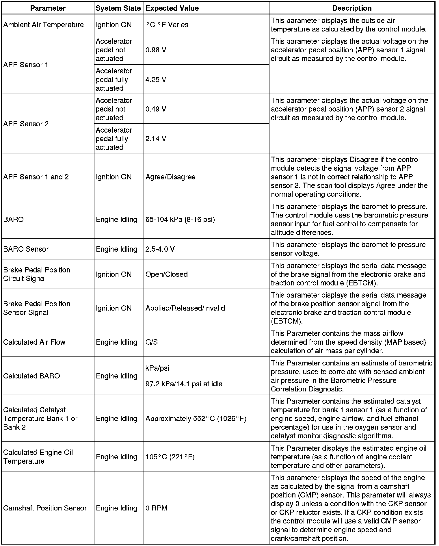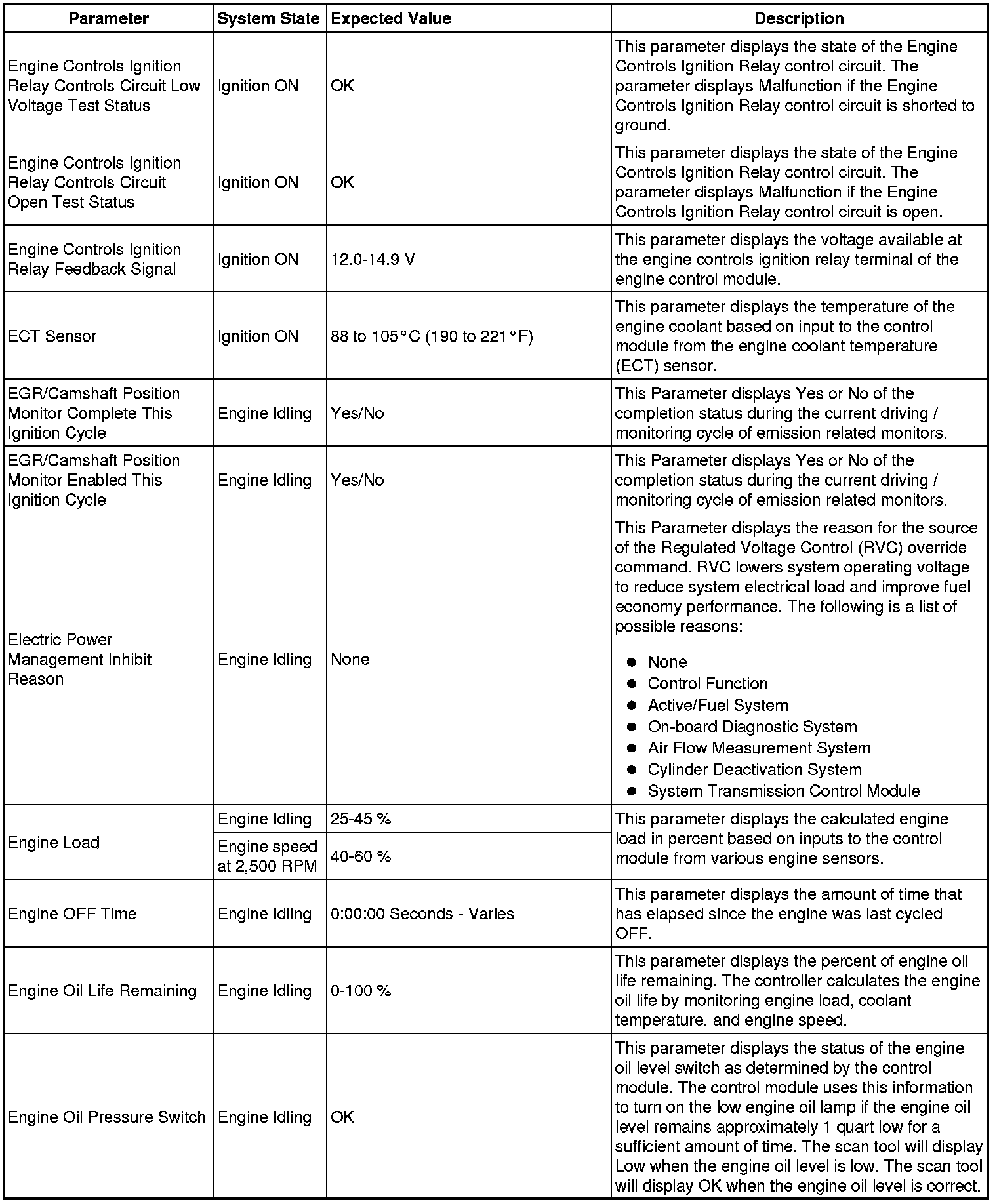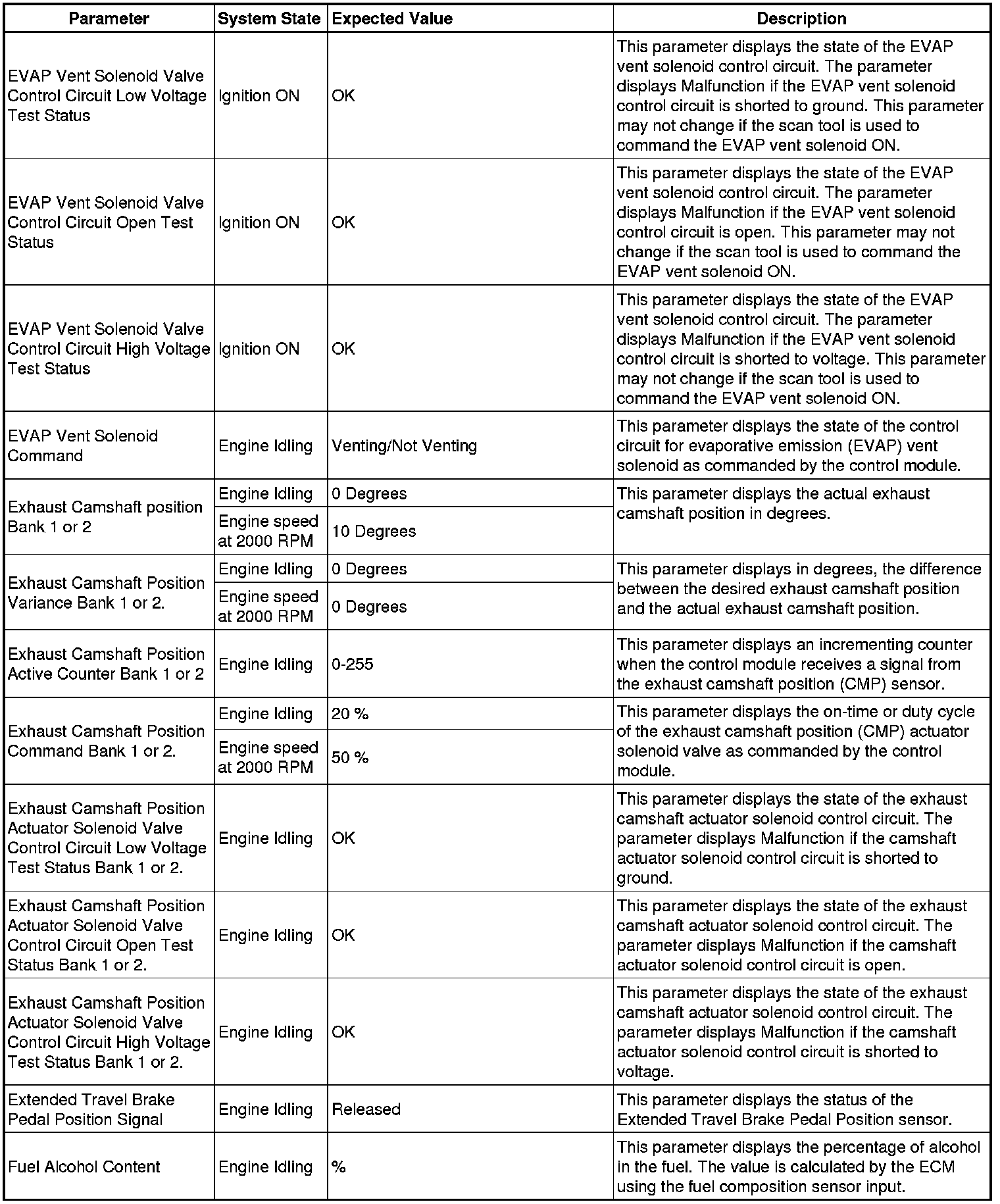 The Engine Control Module Scan Tool Data List contains all engine-related parameters that are available on the scan tool. The list is arranged in alphabetical order. A given parameter may appear in any one of the data lists, and in some cases may appear more than once, or in more than one data list in order to group certain related parameters together.