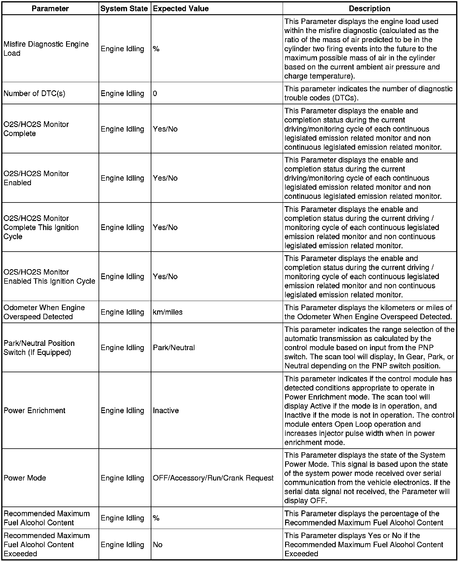 Only the parameters listed below are referenced in this service manual for use in diagnosis.