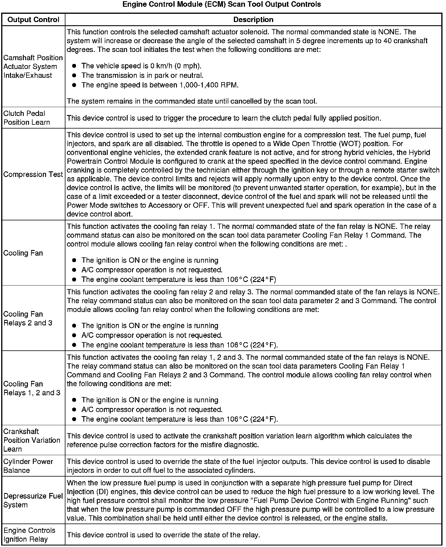 The Engine Control Module Scan Tool Data List contains all engine-related parameters that are available on the scan tool. The list is arranged in alphabetical order. A given parameter may appear in any one of the data lists, and in some cases may appear more than once, or in more than one data list in order to group certain related parameters together.