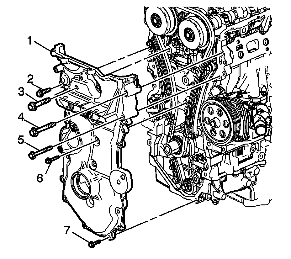 Tighten the engine front cover bolts in sequence to final torque twice: