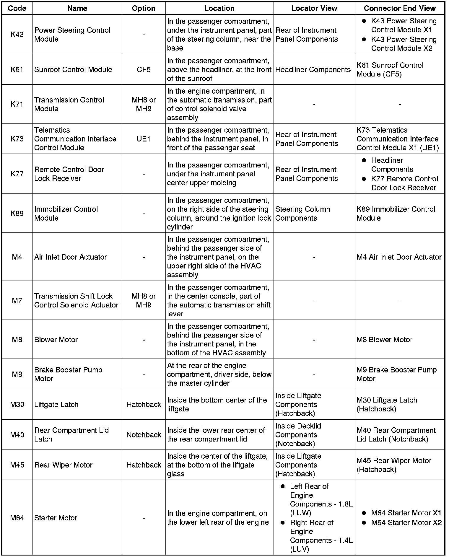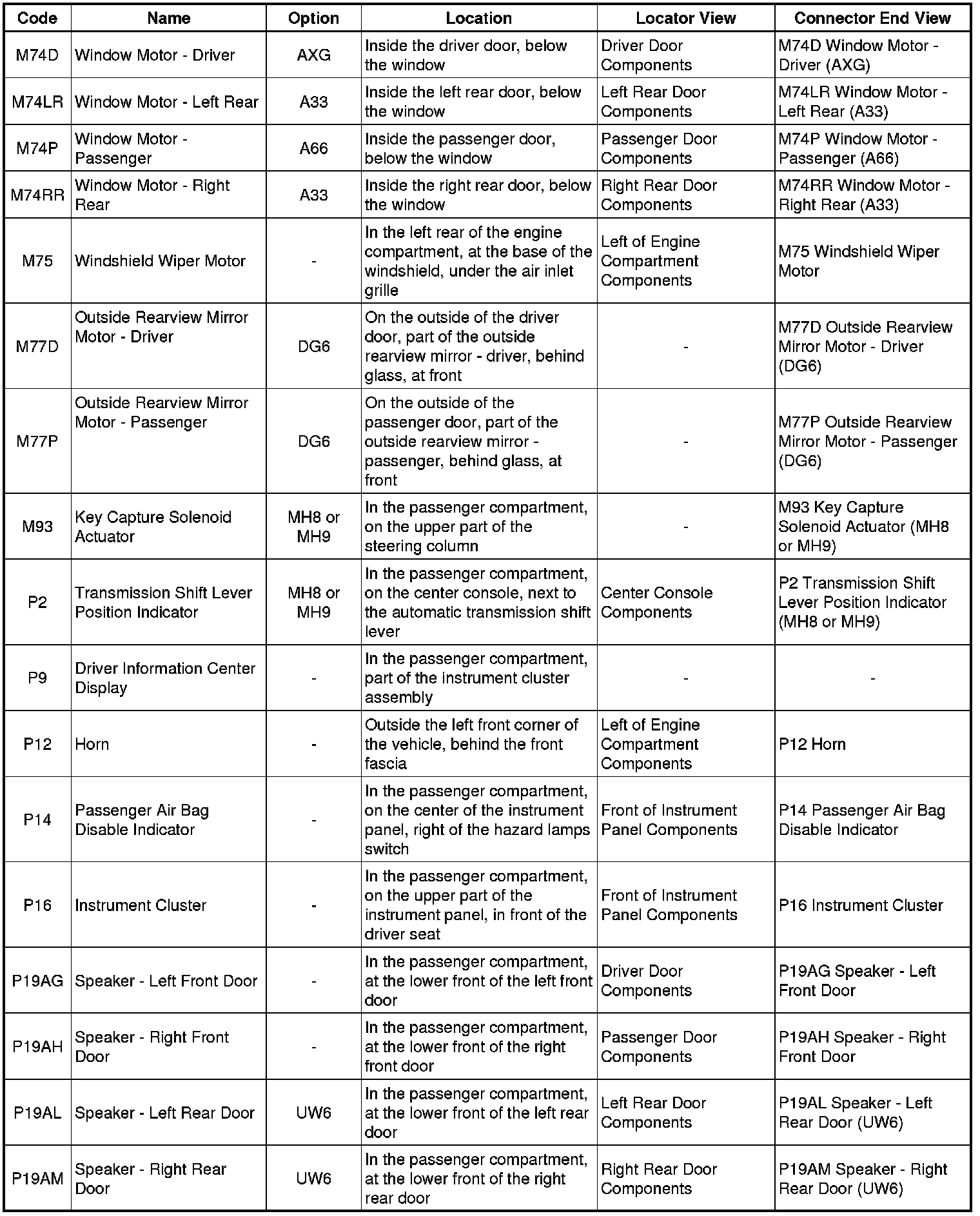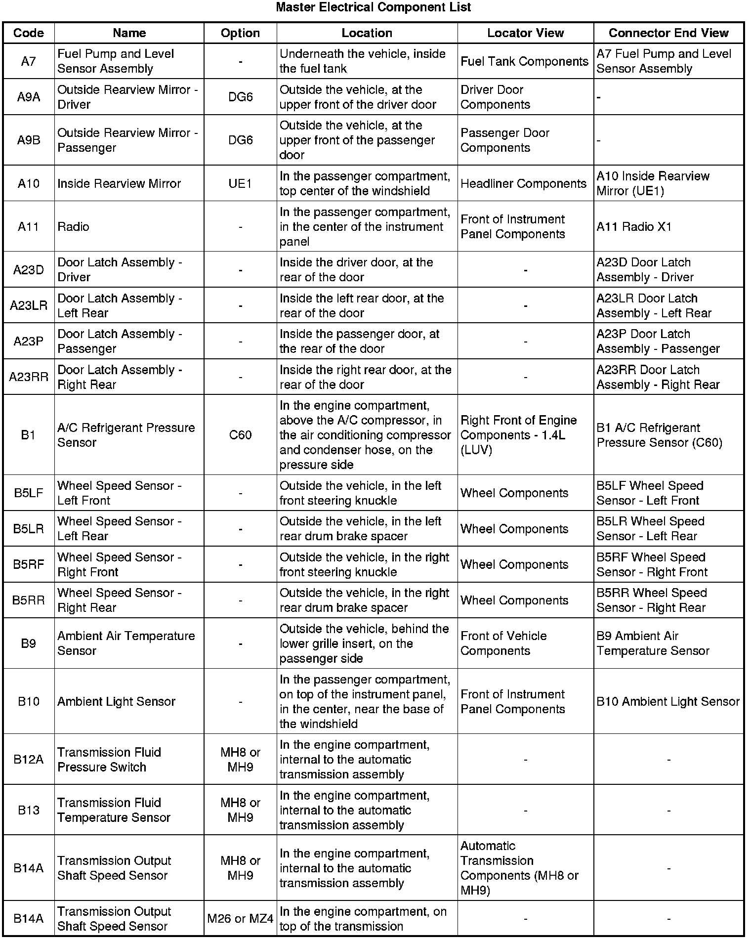 Master Electrical Component List
