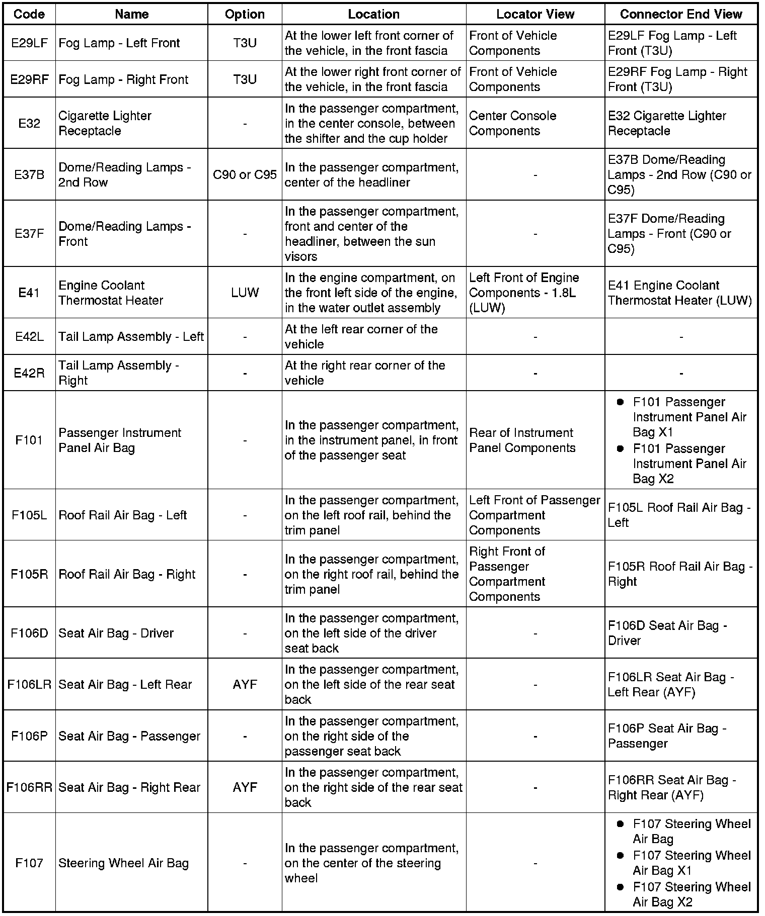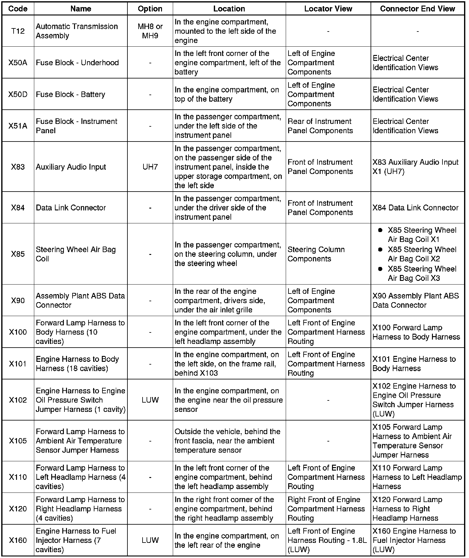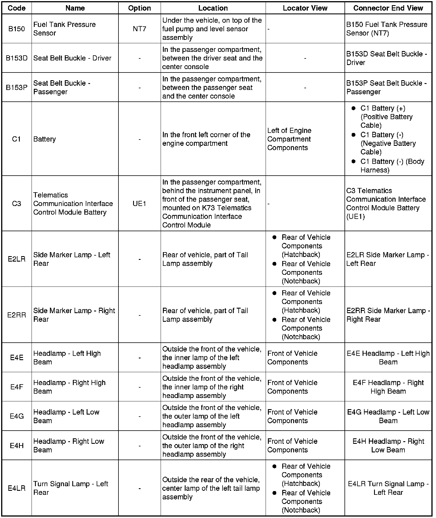 Master Electrical Component List