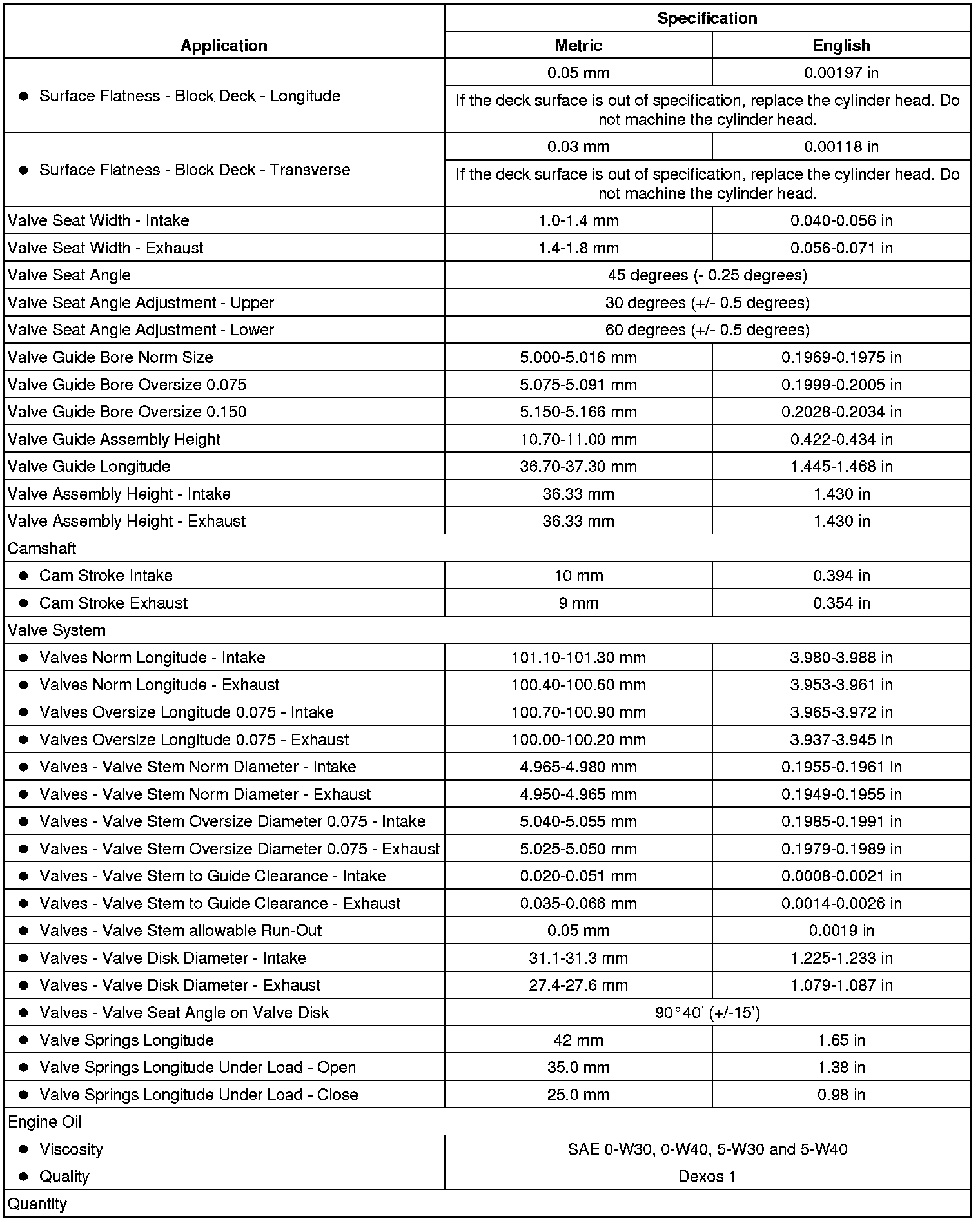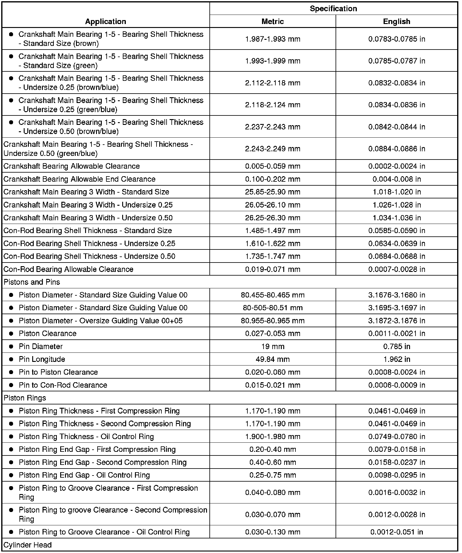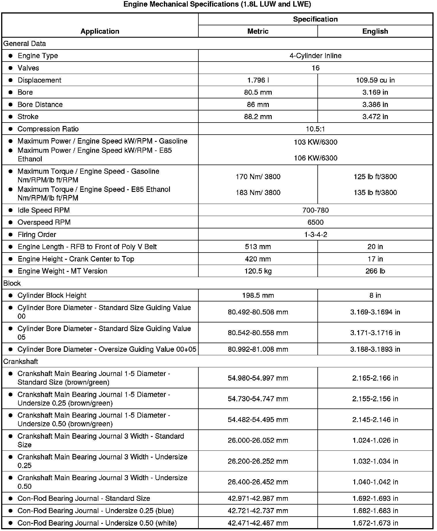 Engine Mechanical Specifications (1.8L LUW and LWE)