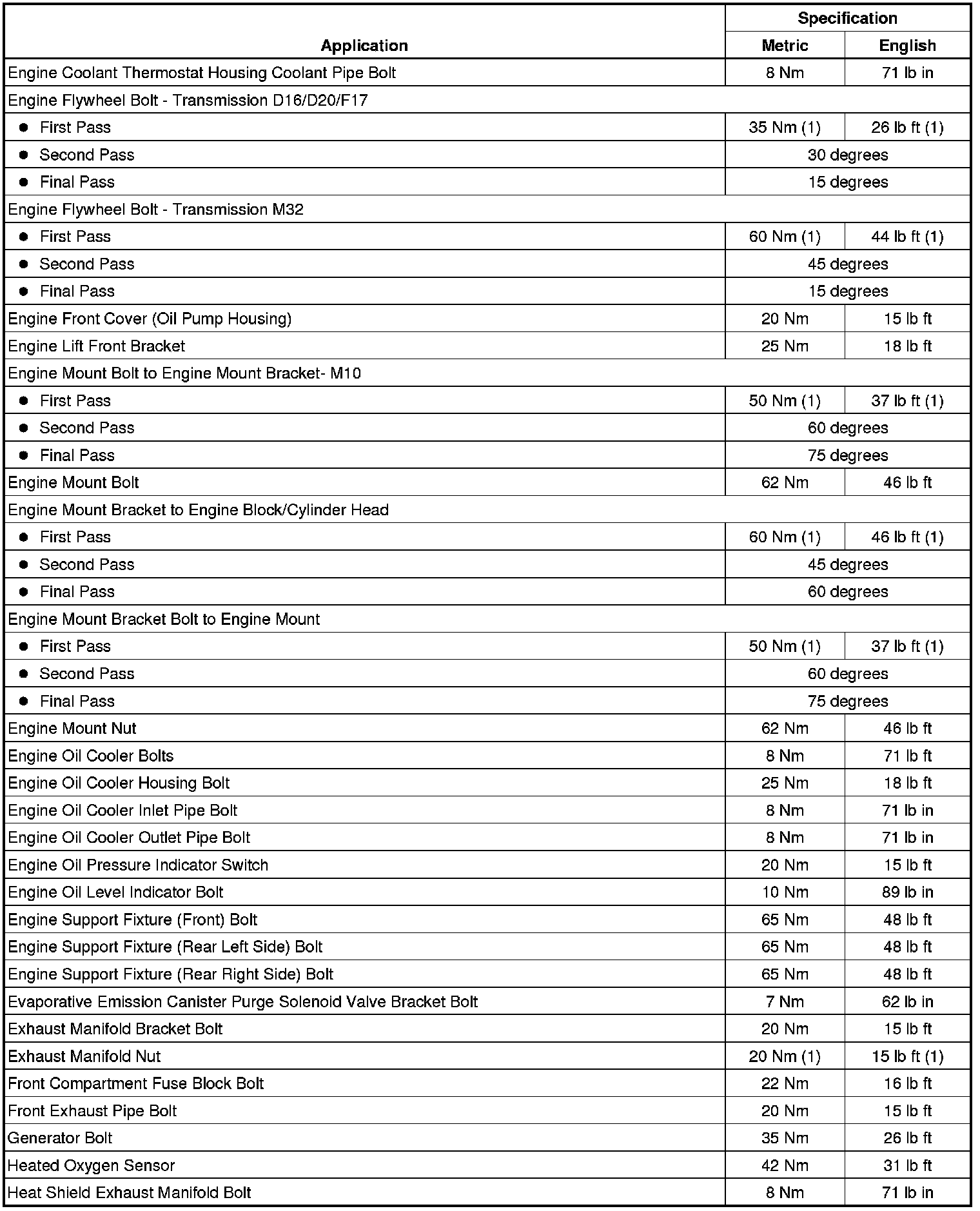 Fastener Tightening Specifications