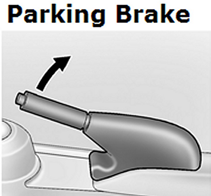 2. Firmly apply the parking brake. Be ready to apply the regular brake immediately if the vehicle begins to move.