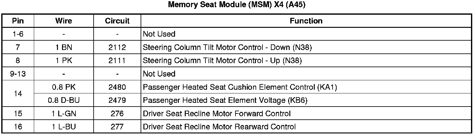 Memory Seat Module (MSM) X4 (A45)