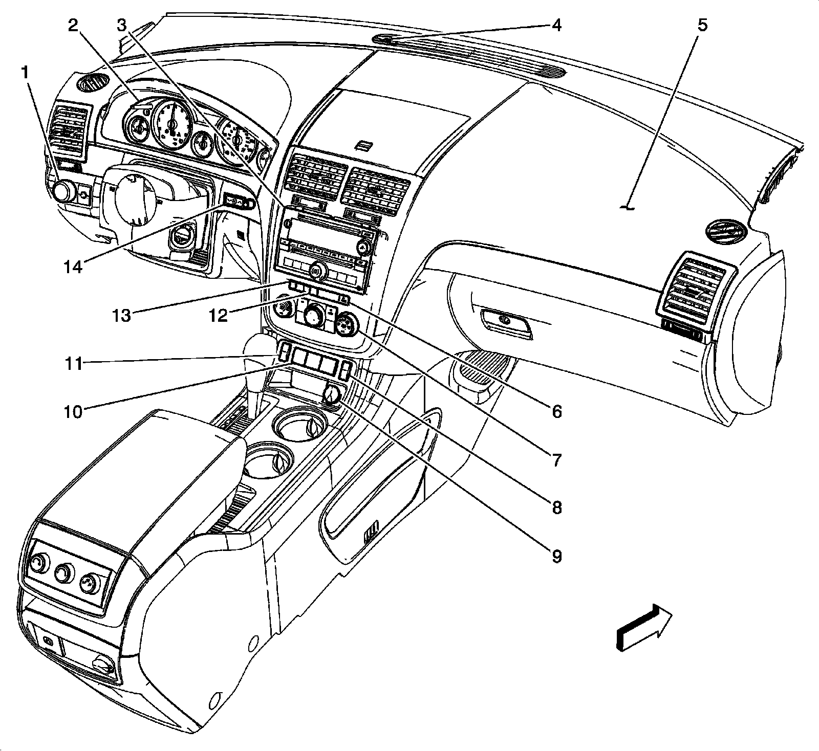 Home >> Chevrolet >> 2013 >> Traverse AWD V6-3.6L >> Repair and Diagnosis >> Locations >> Component Locations >> Instrument Panel/Center Console Component Views >> Instrument Panel Components