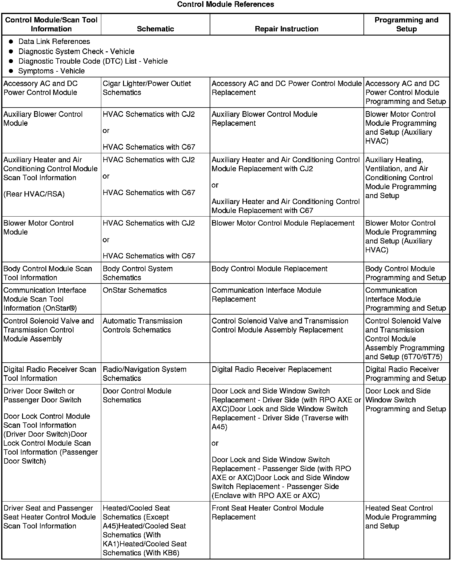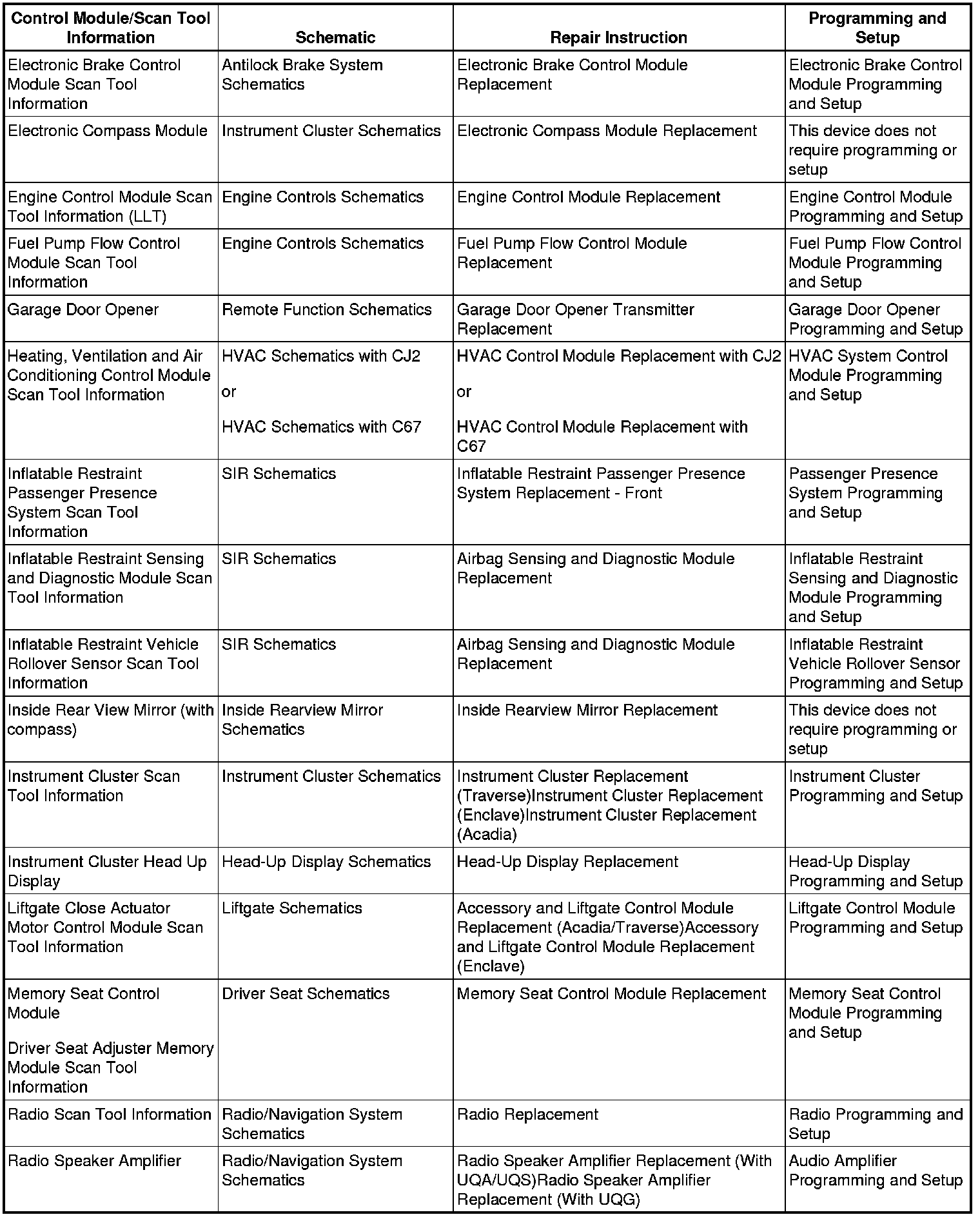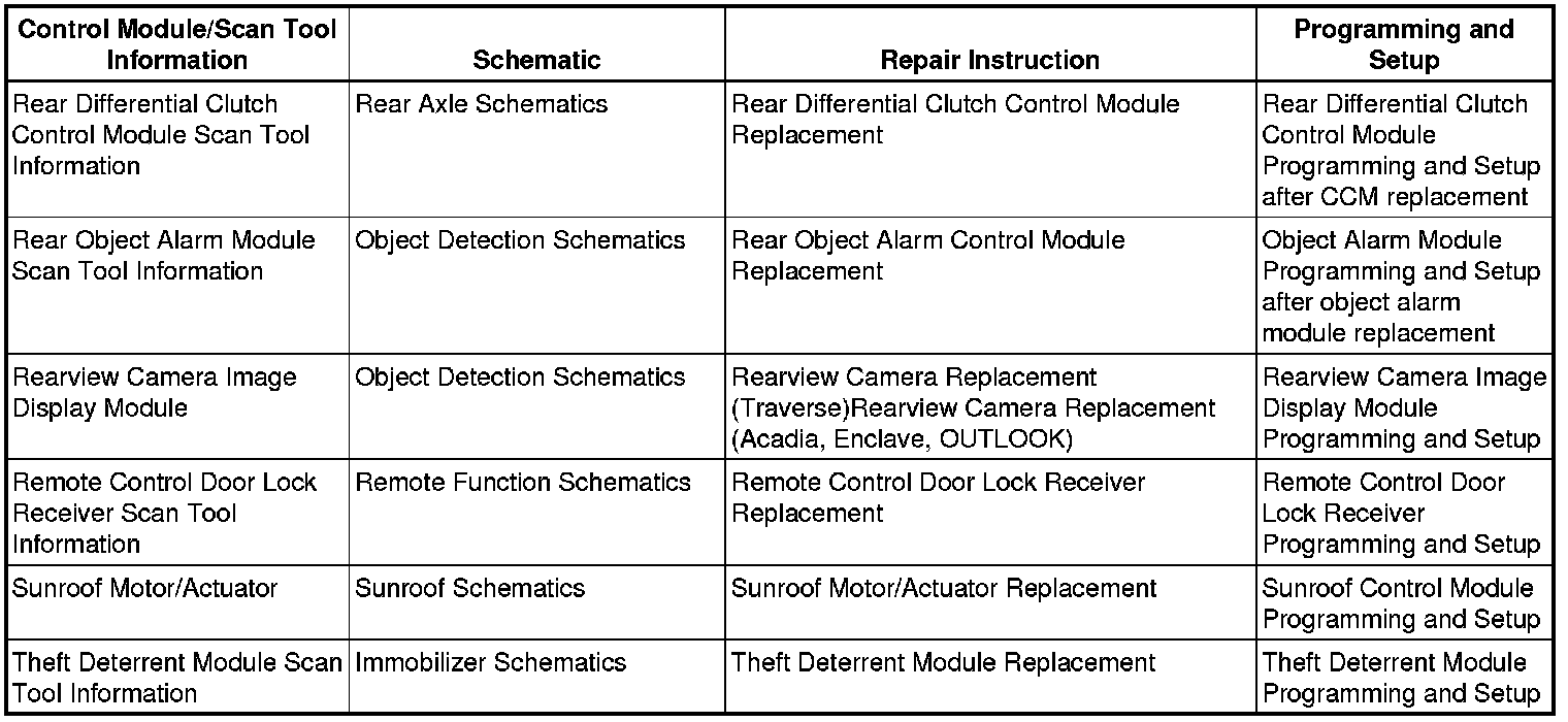 Home >> Chevrolet >> 2013 >> Traverse AWD V6-3.6L >> Repair and Diagnosis >> Testing and Inspection >> Programming and Relearning >> Control Module References
