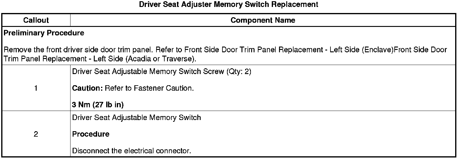 Driver Seat Adjuster Memory Switch Replacement