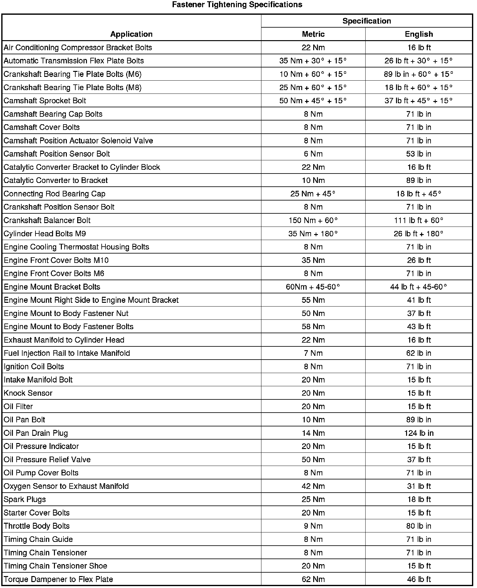 Fastener Tightening Specifications