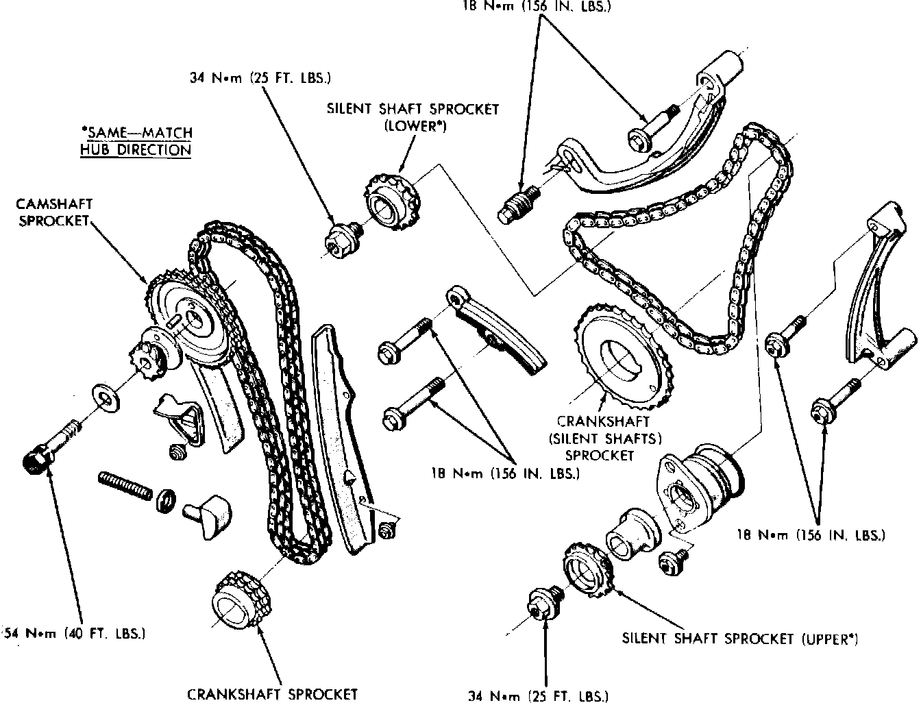 Timing gears & chain assembly. 1982---84: